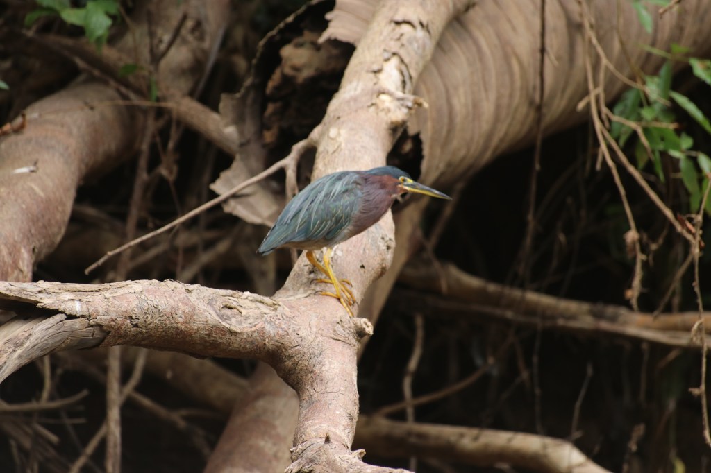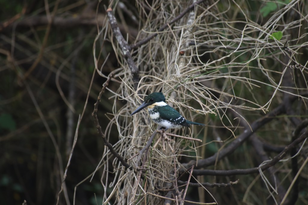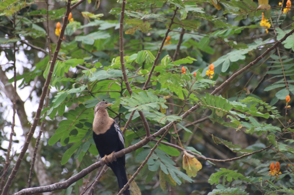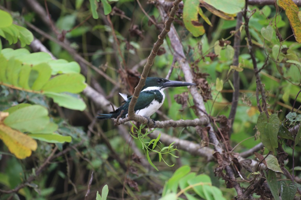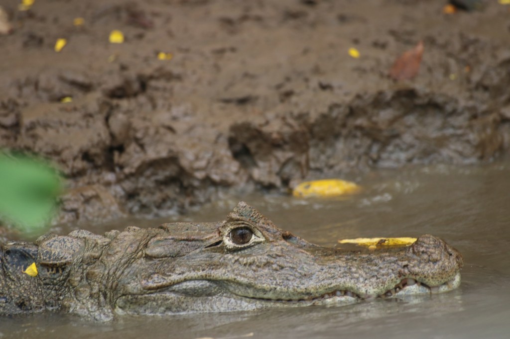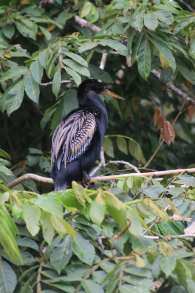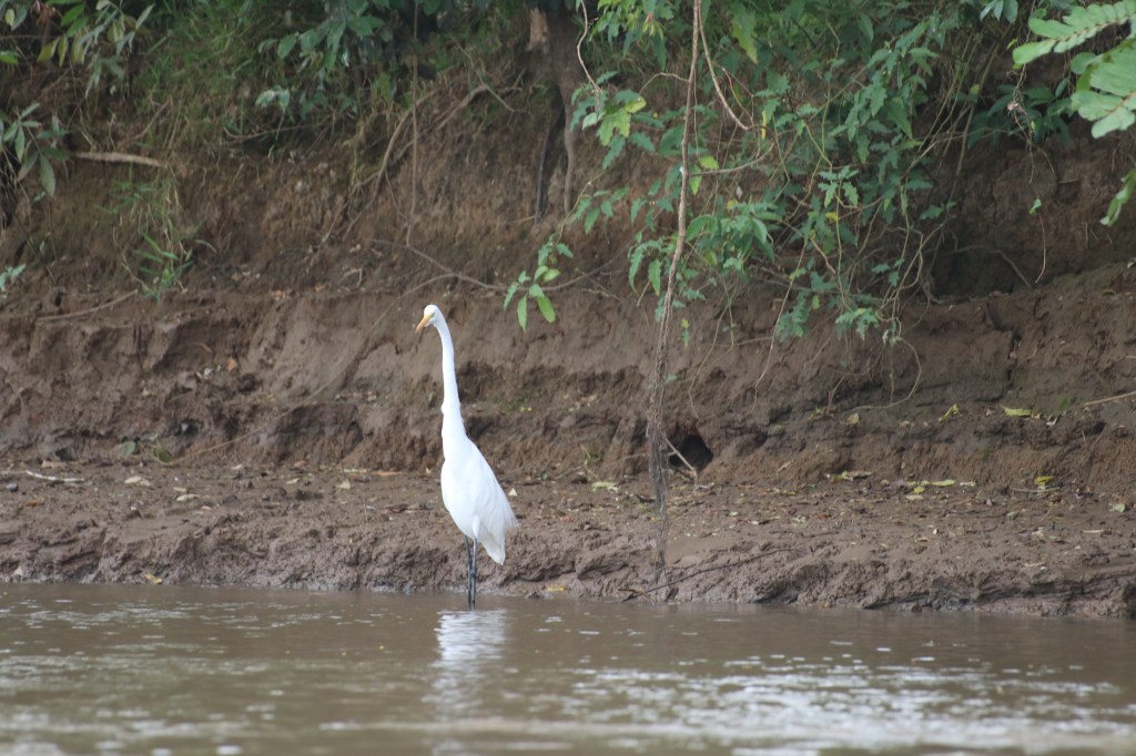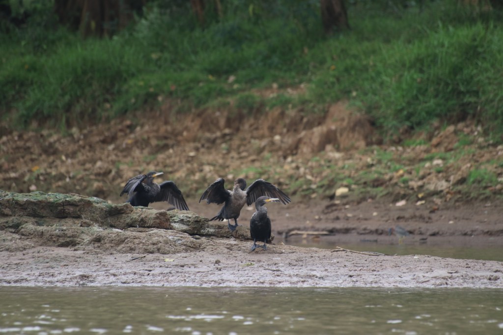 Et après vogue la galère vers les oiseaux. En premier lieu les vautours qui attendent la charogne, les ibis blancs traditionnels, les cormorans aux ailes écartées, se faisant sécher sur le bord de l’eau agrippés à des branches d’arbre ; les caïmans gueules ouvertes, digérant leurs proies ou se rafraichissant ; les hérons bleus se pavanant ou bien des oiseaux au nom inconnu sur les branches regardant les bateaux passer avec flegme.