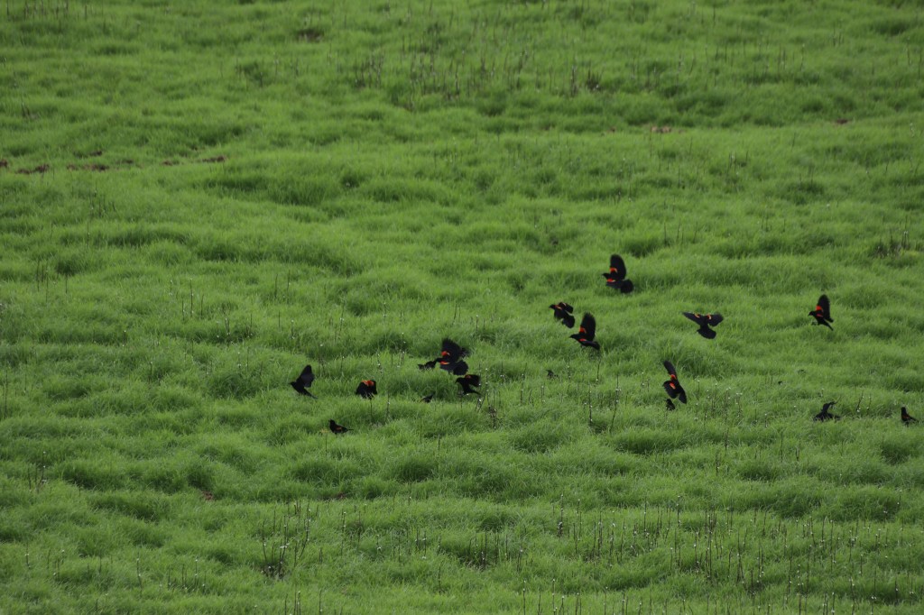 Ou bien ces oiseaux au dos rouge et noir comme des corbeaux qui volent à plusieurs qui se cachent dans les touffes bien grasses des herbes hautes.