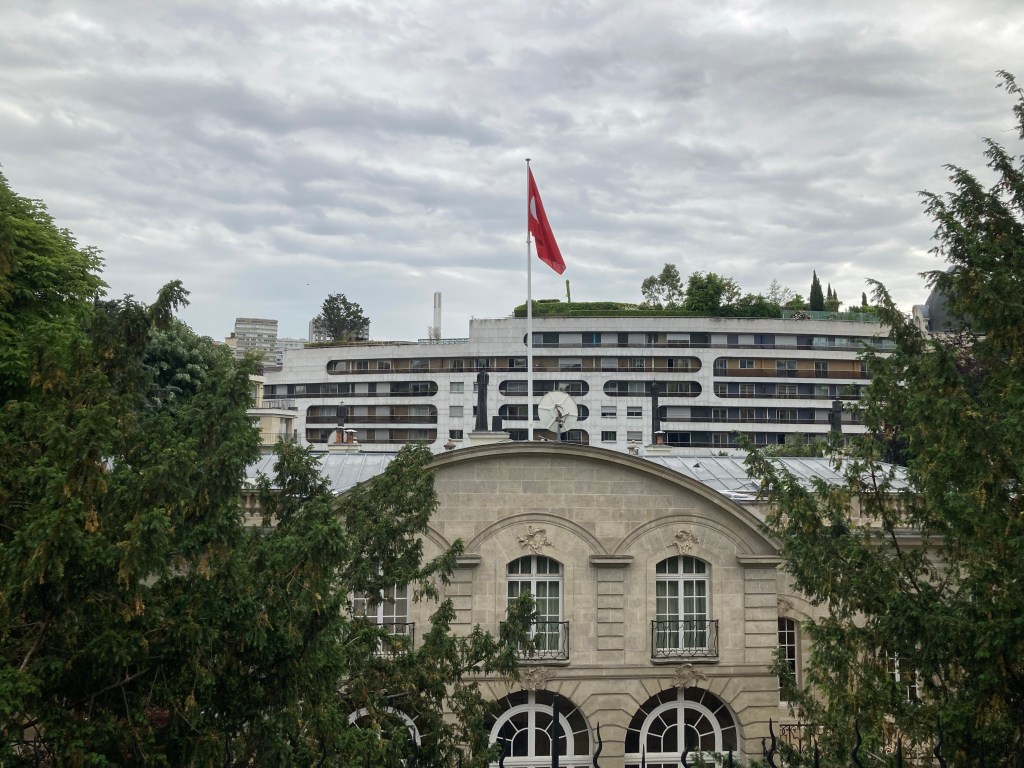 En contrebas du jardin se trouve l’ambassade de Turquie. Le drapeau flotte au vent et nous ramène à la réalité.