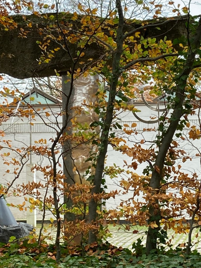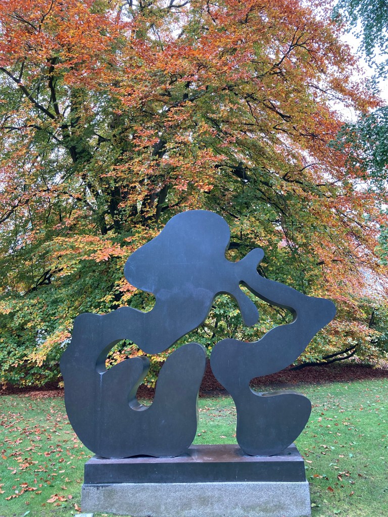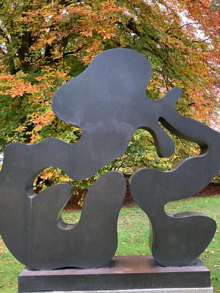 Le temps, qui était gris, ce jour-là, faisait ressortir les arbres jaunissant, rougissant ou encore vert et les œuvres apparaissaient comme par enchantement, rendant le contraste des sculptures encore plus grand.