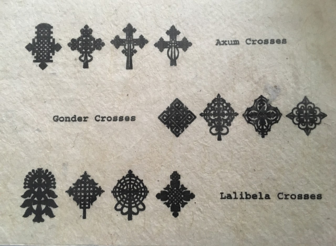 Levée aux aurores pour rejoindre Adoua, lieu de villégiature du Timkat à quelques encablures d’Axoum. Un froid presque polaire (11°), une nuit étoilée comme il en existe tant en Afrique avec des cieux parsemés d’étoiles. Une arrivée dans une foule recueillie, tapie, serrée les uns contre les autres dans l’attente et le déroulement des prières de la messe …. Des pèlerins qui ont jeunés, tout de blanc vêtus, de la tête aux pieds, qui attendent dans une ferveur palpable, au grand air que démarre la fête religieuse. Pendant deux heures la messe se déroule en plein air : des prières, des prêches, du pain et de l’eau sont distribués aux pèlerins en guise d’eucharistie – ceci dans une grande ferveur et en même temps dans une foule calme et bonne enfant. Les prêtres bénissent les personnes. Pendant ce temps les tabots ont passés la nuit sous la tente, dans la fumée de l’encens et le chant des psaumes. Puis les prêtres se regroupent autour d’un bassin d’eau représentant le baptistère – le Timkat se déroule toujours autour d’un bassin – c’est le baptême du Christ. Et là les chants des prêtres commencent avec les bâtons aux poignées en bronze ou en bois, les tambours et des danses rythmées démarrent. C’est une danse des bâtons, je dirais mi amusée mi sérieuse. Des bâtons posés au sol ou bien levés vers le ciel. Une danse qui s’organise et qui ne manque pas de piquant. Un élan vous prend et vous vous mettez au diapason, dansez, chantez – tout cela dans la bonne humeur et aux sons des youyous. Nous nous étions mélangés dans la population en liesse et surtout moi parmi les femmes qui nous dévisageaient avec curiosité et nous parlions chiffons et beautés. Je vous rassure seuls nos gestes et nos regards échangeaient des paroles que nous ne comprenions pas. C’est l’avantage du voyage de pouvoir parler et échanger à travers les yeux et les sourires. Petit à petit la foule se resserrait, se faisait compacte pour atteindre le point d’eau – nous étions plus de 20 000, chantant, dansant et hurlant des youyous ! Je me souviens de ces sourires, de ces femmes en habits de fêtes avec des bijoux accrochés aux cheveux, aux boucles d’oreilles très stylisées couvrant le lobe de l’oreille, les cheveux peignés et tressés entourant le haut du front, ou bien avec des raies plus ou moins épaisse!. Elles avaient aussi de grandes boucles comme des anglaises. Un vrai défilé de mode en un lieu peu destiné à cet effet ! Certaines portaient aussi des foulards bleus qui enserraient leur crâne et elles revêtaient toutes un châle blanc sur la tête et les épaules … pureté, sainteté de ce jour. Les petites filles toute vêtues de rose, de blanc nous regardaient avec des yeux écarquillés, curieuses de la nouveauté que nous représentions en ce site. Puis les prêtres s’installaient devant le bassin et continuaient leurs chants et leur liturgie. L’aube se levait, le soleil apparaissait et vint le moment de sanctifier l’eau du baptême. L’évêque consacre l’eau, en mettant une plaque ronde avec trois bougies en cire allumées, qu’il lance sur l’eau du bassin. Les bougies flottent comme un petit navire ou radeau à la merci des vagues et de la colère de la mer ! Puis les prêtres font le tour du bassin et en bénissent l’eau à quatre points cardinaux. La foule se resserre pour voir les prêtres et la croix sous forme de bougie, qui vogue sur l’eau. Et là c’est le clou du spectacle : tous courent et se jettent vers l’eau, vous éclaboussent ou vous aspergent pour vous bénir. Certains sautent dans l’eau du bassin ou remplissent des bouteilles d’eau pour vous arroser ou les apporter à ceux qui n’ont pu se déplacer. Cette eau consacrée vous purifie de tous les péchés. Et vous repartez pour une nouvelle année purifié et sanctifié. C’est surprenant sur le moment car on ne s’attend pas à être arrosé et surtout la foule compacte vous écrase. La police est intervenue pour écarter les gens et éviter de finir dans le bassin noyé, broyé ou écrasé. Puis les trois tabots, qui avaient été sortis des églises et étaient restés toute la nuit sous des tentes, portés sur la tête des prêtres, sous des parasols en brocart, partent en procession dans la ville. C’est un moment magnifique car les prêtres sortent leurs ombrelles rondes, coniques ou octogonales, de velours rouge ou verte ornées, brodées de croix en fil d’or et dessinées de Sainte Vierge à l’Enfant, portent des chapeaux cloches de tissus chamoisés, dorés. Les diacres s’affichent avec des croix de cérémonie tigréennes petites qu’ils portent à la main ou bien de grandes qui sont sur des hampes de bois. Ils marchent sous le retentissement des youyous des femmes. Ils traversent toute la ville pour rapporter les tabots dans leur sanctuaire respectif. Les gens dansent au carrefour. Et puis chacun reprend le chemin de la maison pour fêter en famille, autour d’un repas, le Timkat. Jusqu’à l’année suivante. C’est un grand moment de communion, de joie et de grandiose parade où tout le monde s’embrasse. La foule est en liesse et fait la fête pour démarrer une nouvelle année dans la joie et la pureté.Je vais vous parler aussi des croix orthodoxes Ethiopiennes inconnues de nous. Elles ont trois origines : celles d’Axoum, celles de Gonder et celles de Lalibela. Elles ont des formes différentes les unes des autres et sont plus ou moins travaillées. Mais elles sont typiques et vous ne les trouverez qu’en Abyssinie. La taille des croix peut varier du simple pendentif à l’imposante croix de procession. Les croix les plus anciennes sont souvent en fer, en cuivre, en bronze ou en métal précieux. Celles antérieures au XVe sont des croix processionnelles, caractérisées par une hampe qui permet d’y adapter un manche afin de la transporter lors des processions. Elles sont de forme 