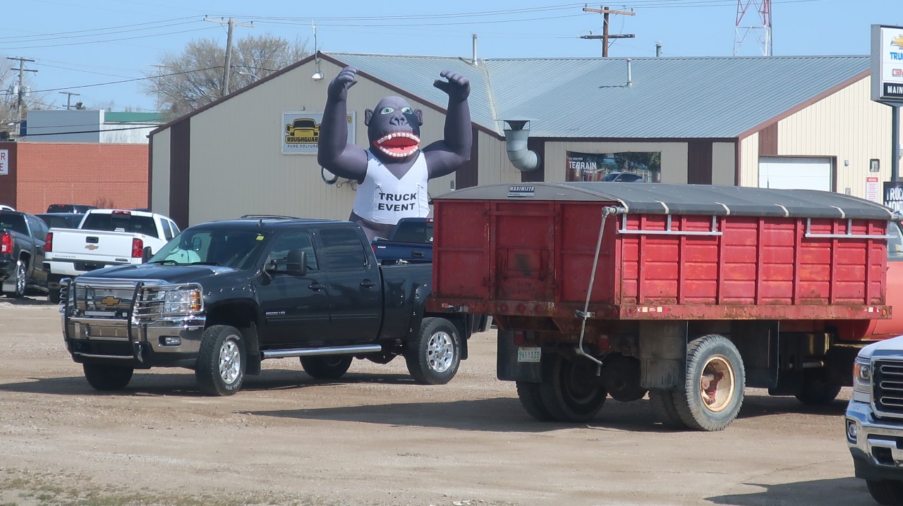 Ou bien on croise des sites commerciaux avec des camions, des voitures énormes et parfois une attraction comme le chimpanzé avec ses bras en l’air – on dirait King-Kong mais il manque la jolie blonde dans ses bras.
