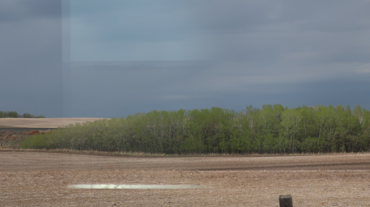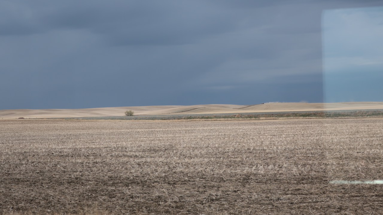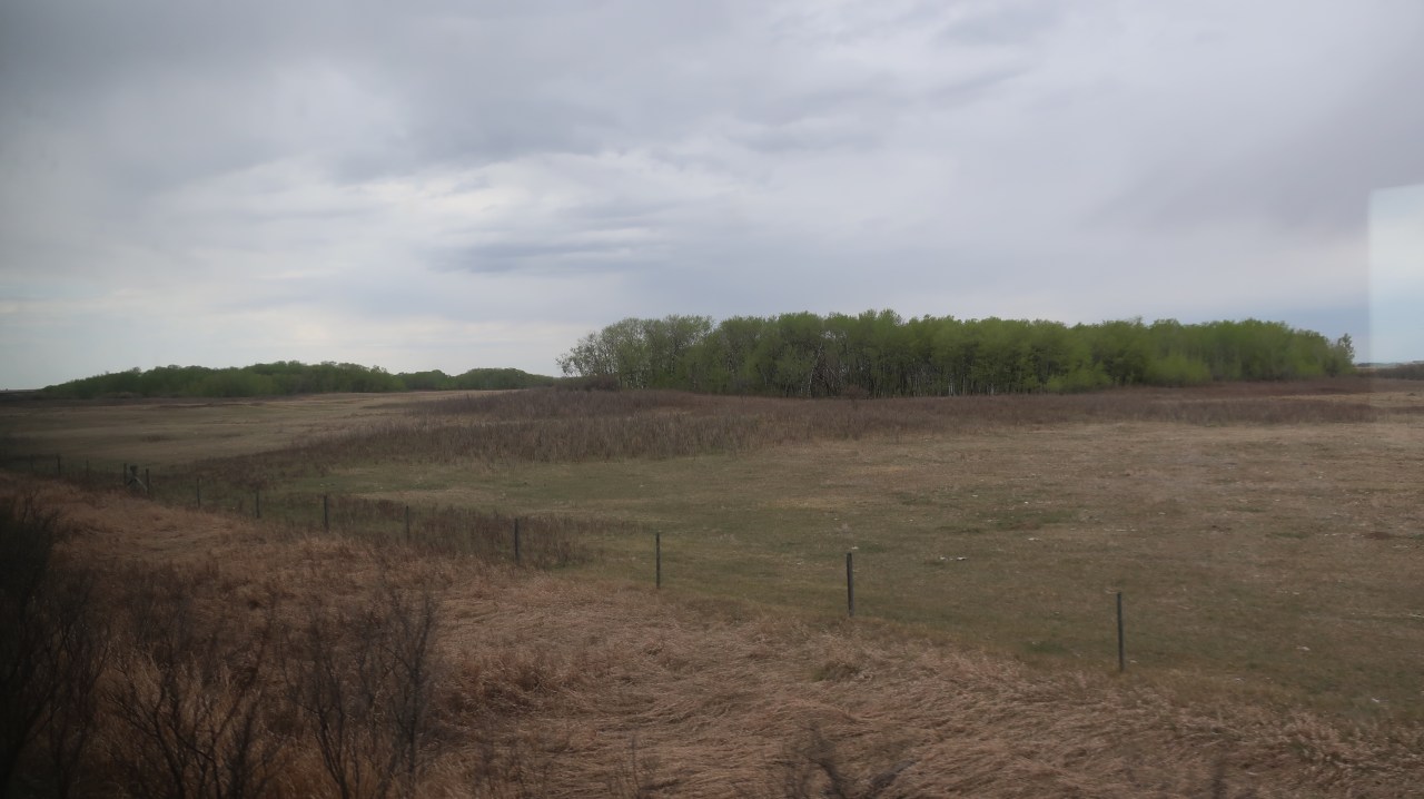 Notre chef de compartiment veille au grain ! Il est temps de remonter et de repartir à la découverte du monde canadien. Et les plaines jaunes envahissent à nouveau notre champ visuel. Sur certain flanc de colline on peut voir s’écouler des wagons citernes sur des kilomètres. Ou bien voir les vaches rousses ou noires foncées brouter au loin. Parfois des silos à grains font leur apparition.