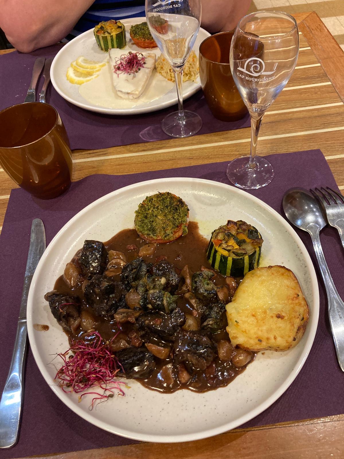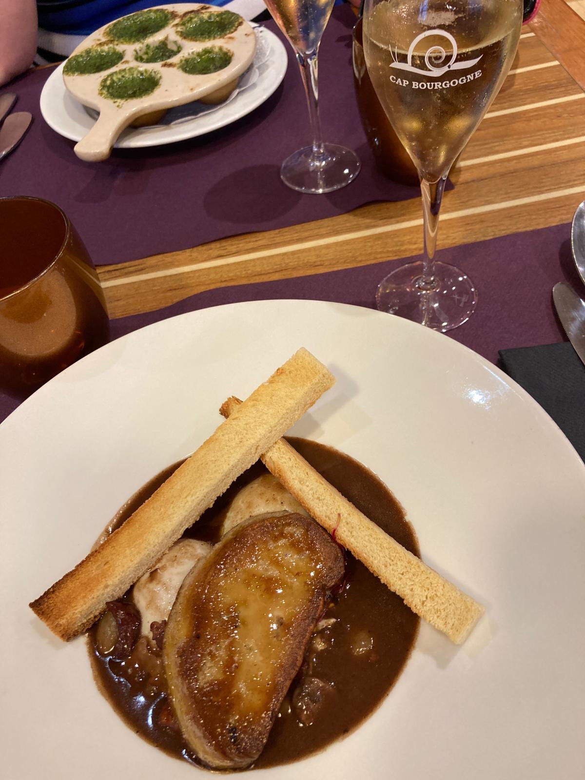 Et nous avons fini dans un super restaurant du cru : le relais du Canalou. Un relai où tout est resté dans son jus avec des poêles à bois où l’on mettait les assiettes à chauffer pour les garder chaudes, où les murs sont décorés d’affiches « en fer » avec toutes les marques du 20e siècle comme « ya bon banania » ou « picon » et tant d’autres. Un endroit où l’on se sent bien et om les serveurs sont aux petits soins. Et puis la cuisine ne s’en laisse pas conter – Là aussi un délice entre les œufs meurettes ou les escargots de Bourgogne, la sandre ou la viande charolaise et la glace au cassis agrémentés de crémant de Bourgogne. Une plongée dans le Bourgogne où les papilles gustatives se délectent.
