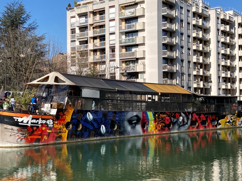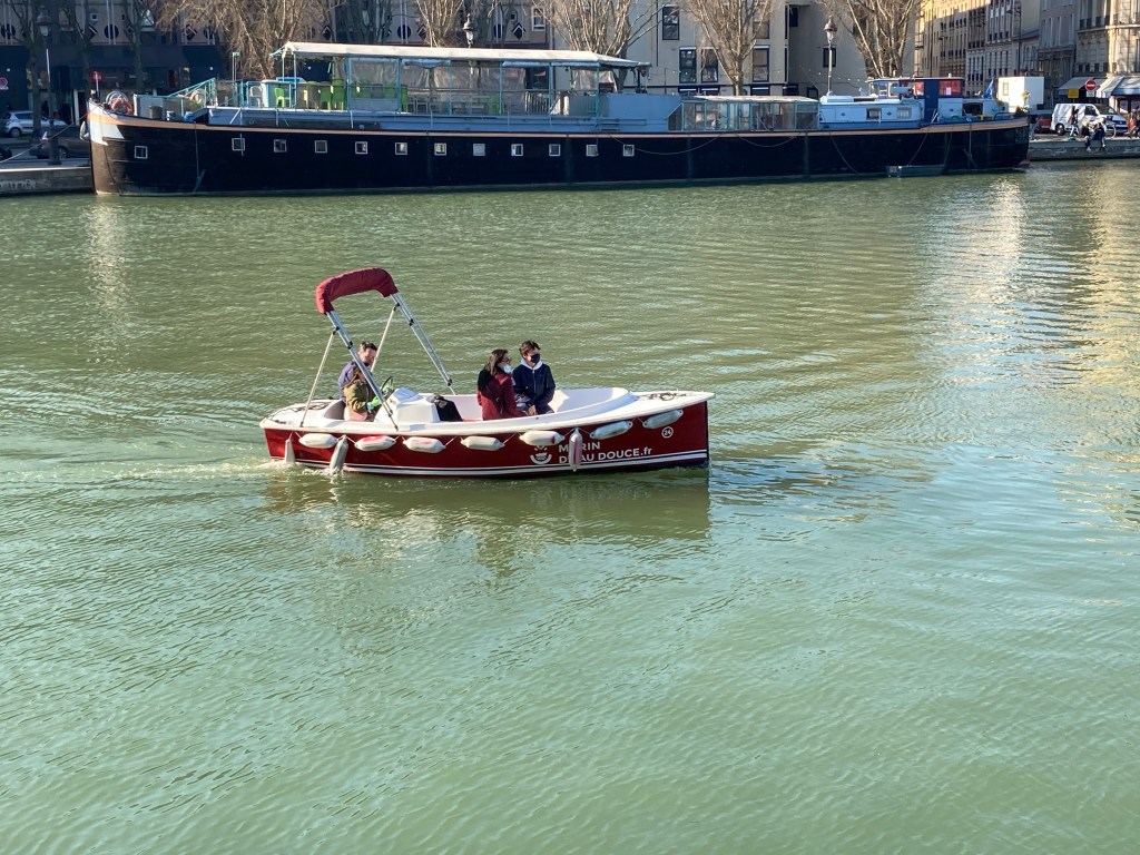 On peut même si le cœur vous en dit partir sur un petit bateau rouge voguer sur le canal et remonter jusqu’à Bobigny. Une idée de balade et d’échappée de la capitale refermée sur elle. Le nom des bateaux est le marin d’eau douce.