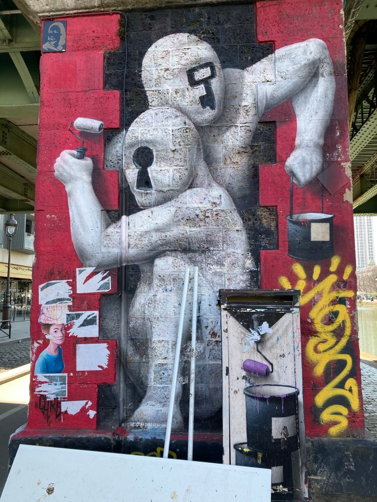 Et des fantômes repeignent les murs du pont avec comme visage des clefs et des serrures. Devons-nous trouver les clefs de ce quartier, de ce pont ou bien du monde qui nous entoure en cette période de Covid ?