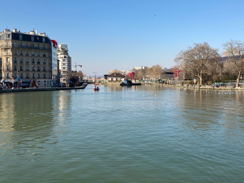 Coucou nous voici en balade le long du canal de l’Ourcq par un joli mois de mars où le soleil tape fort.