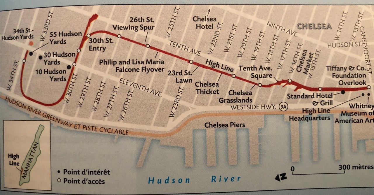 Aussi, notez que les ascenseurs se trouvent aux entrées situées sur la 14th Street, la 16th Street, la 23rd Street et la 30th Street, et que les toilettes sont au niveau de la 16th Street également. Et si vous avez soif, vous trouverez des fontaines à eau gratuites au niveau de Gansevoort Street ainsi que des 16th, 18th, 23rd et 30th Streets.