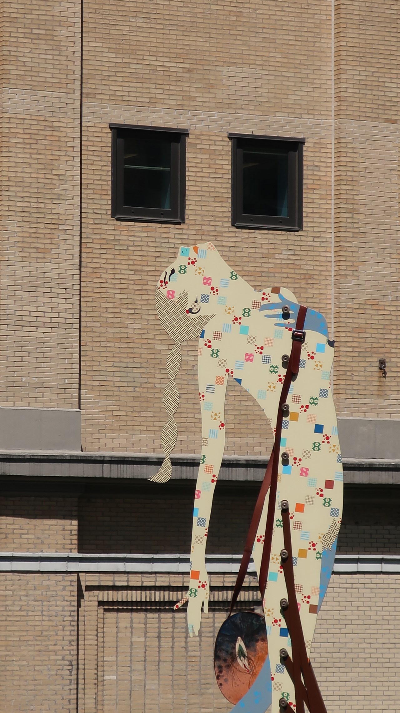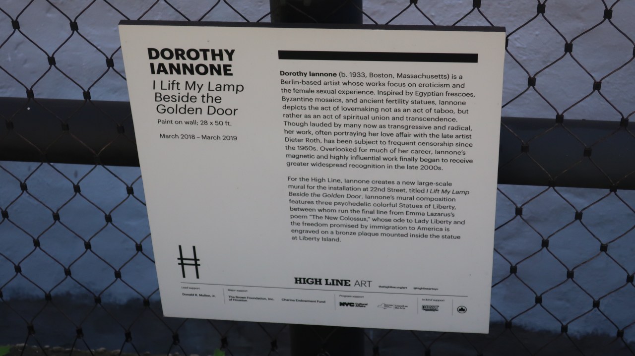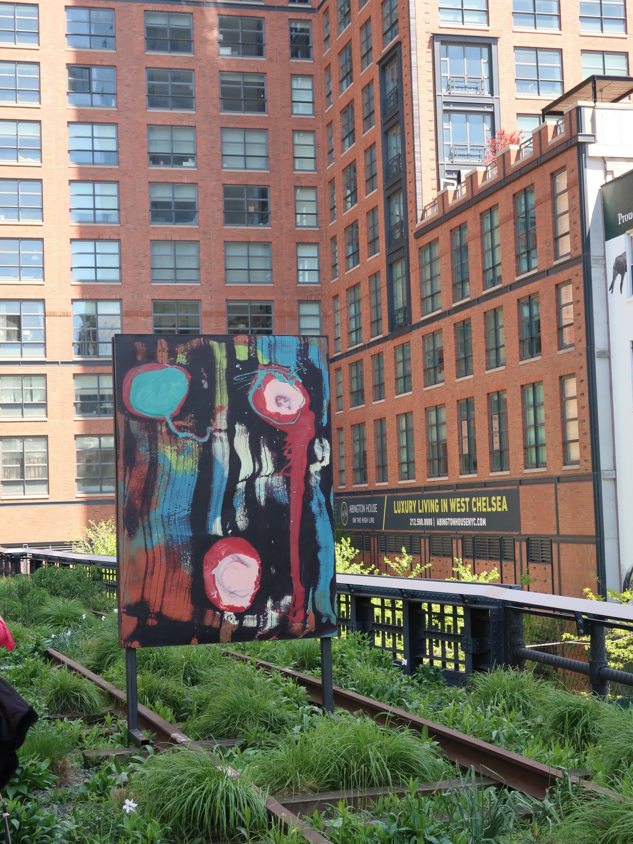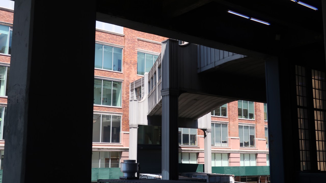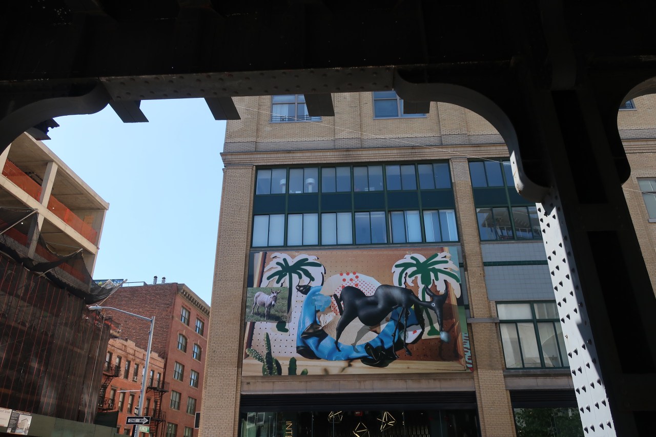 On peut admirer d’anciennes usines réaffectées en bureaux ou bien en appartements. Le quartier de Meatpacking, les anciens abattoirs en murs de briques rouges. Des ponts passent au-dessus de la High Line pour relier deux immeubles entre eux. Et on croise à nouveau une œuvre d’art : cette femme qui penche son corps et sa tête en arrière comme une danseuse posant devant un objectif.