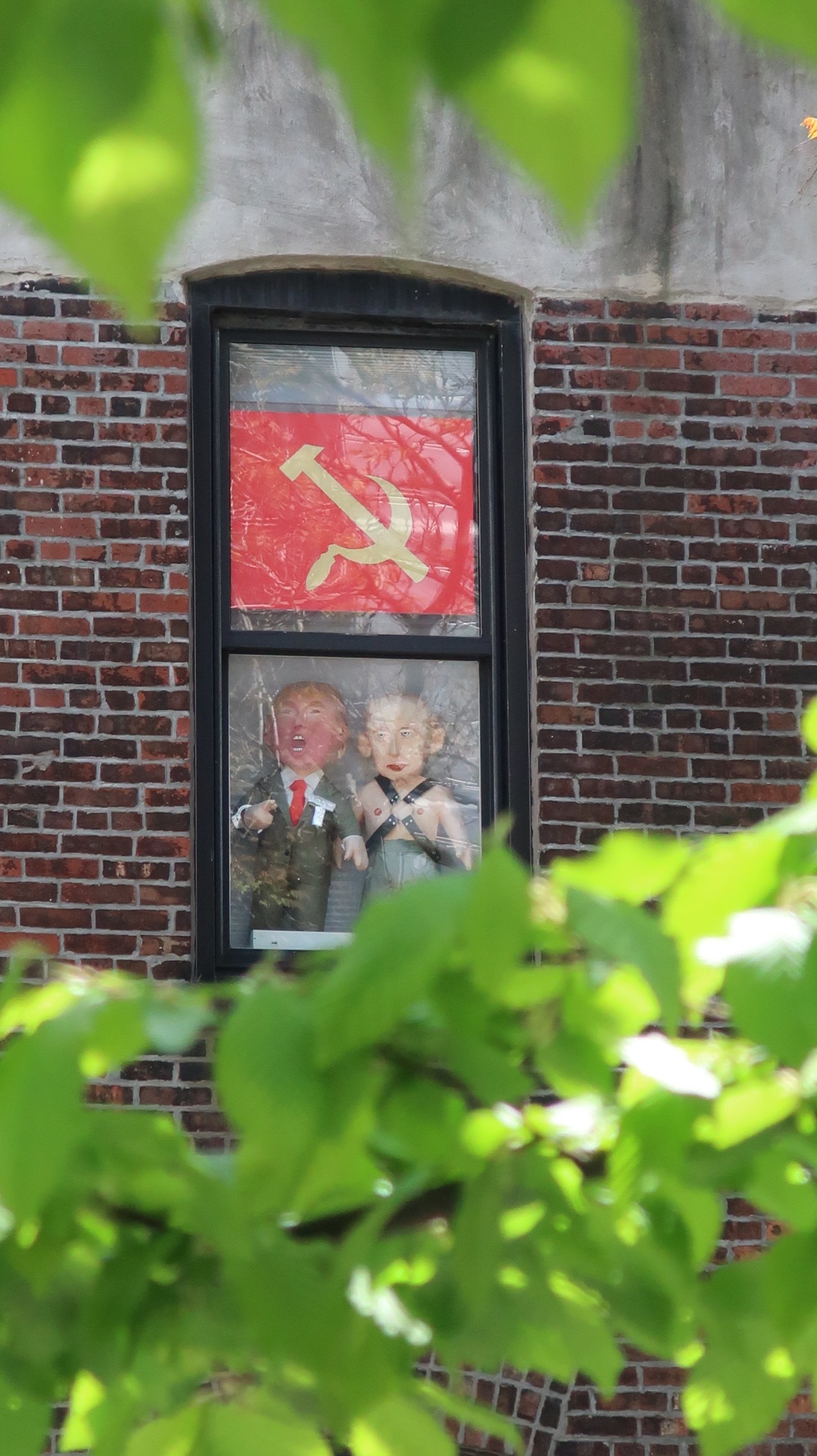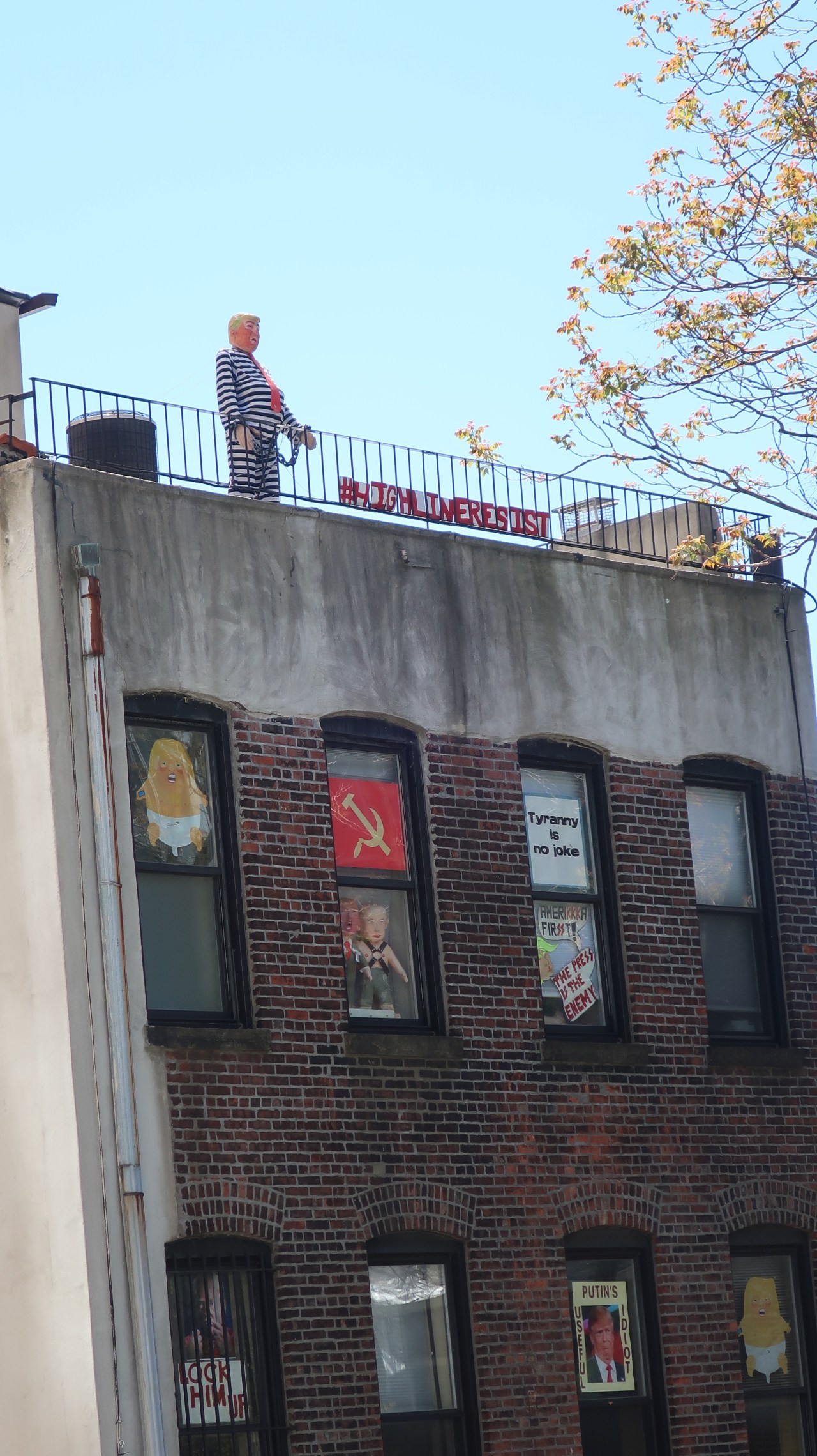 On longe enfin le musée du KGB (il faut le faire pour trouver ça à NY !) avec le drapeau communiste et les deux personnages russes. Juste au-dessus, un tolard sur le rebord de l’immeuble vous rappelle que le musée du KGB est bien là et vous somme de résister. Il est écrit la High Line résiste !