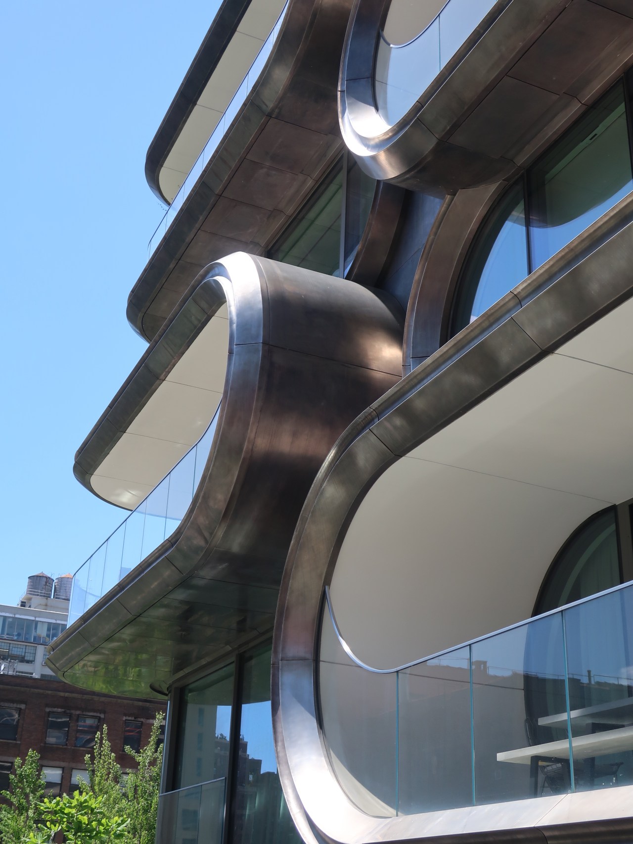 Il est un endroit le long de l’Hudson River où il fait bon se balader dans New-York – la high line. Sorte de coulée verte inspirée de René Dumont, construite sur la voie de chemin de fer, sur 2,3 kms. Un endroit où il fait bon marcher, respirer et regarder toutes les œuvres d’art qui la parcourent. C’est un lieu de promenade 100% verte et écologique. Et puis en matière d’architecture on y trouve tous les nouveaux styles avant-gardistes. Tant en termes d’immeubles d’habitations, que de bureaux ou de centres commerciaux.