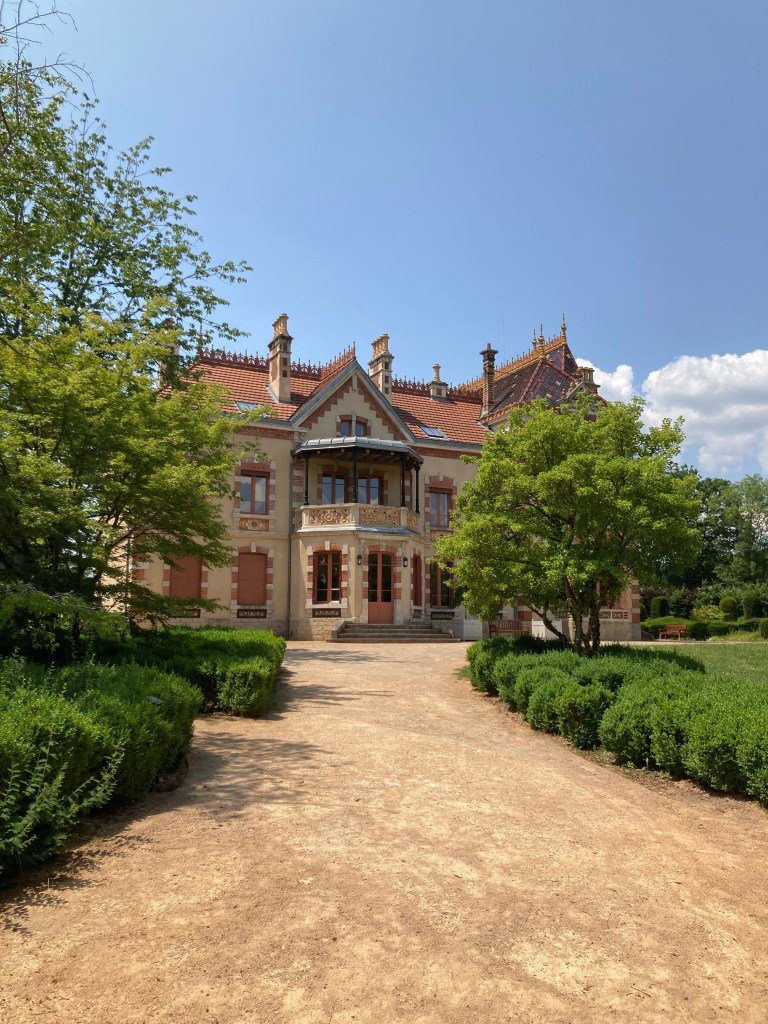 Un joli parc vous accueille et de la grille d’entrée on aperçoit la maison des familles Perrusson et Desfontaines.