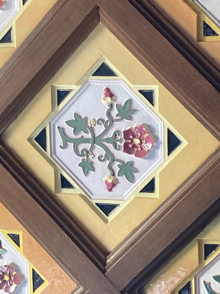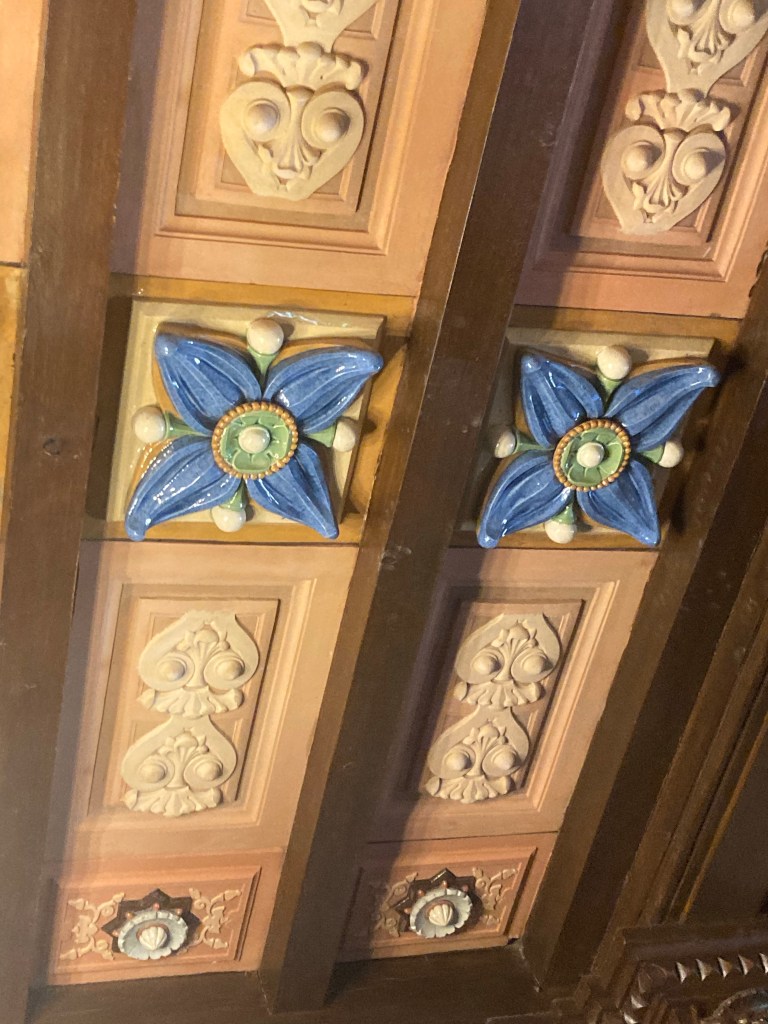 L’escalier qui mène aux étages est lui aussi décoré de caissons de céramiques.