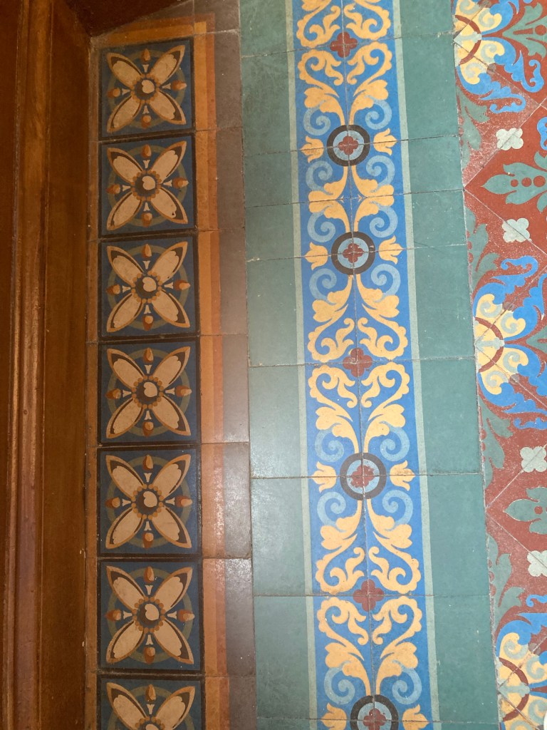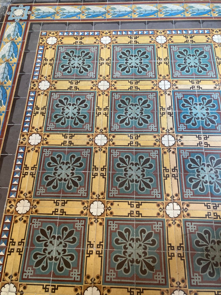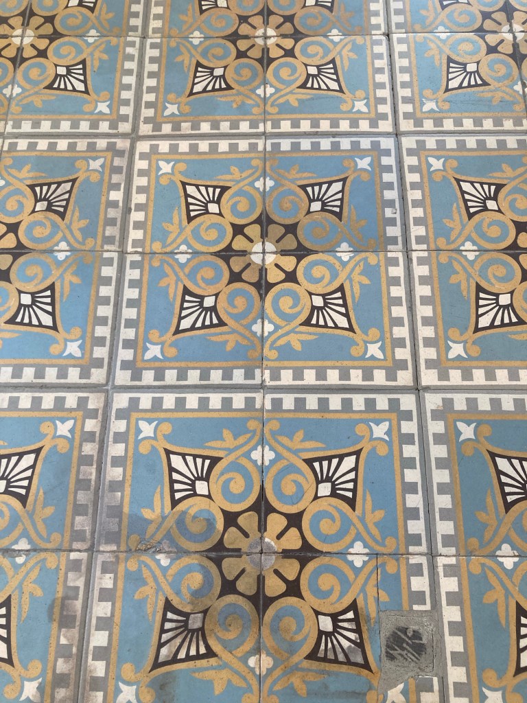 Sur les sols du carrelage mat avec des dessins différents les uns des autres, comme un catalogue vpc mais réalisé au sol de la maison.