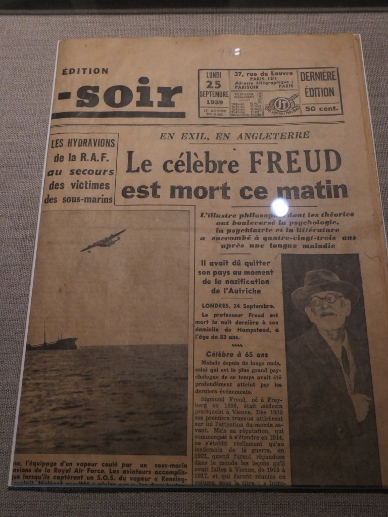 Pour quitter Vienne la famille Freud a dû accepter un arrangement pour aller s’installer à Londres. Certains des enfants étaient partis bien avant et s’étaient exilés soit à Londres soit aux Etats-Unis. Freud mourra à Londres des suites d’un cancer.