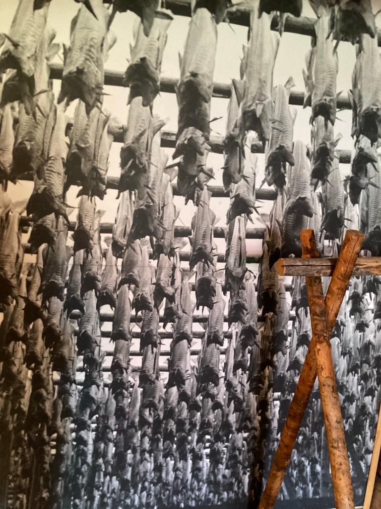 La morue fraiche dite cod ici ou bien en forme stockfish c’est-à-dire que la morue entre février et avril a séché au grand air sur des sortes de fumoirs, attachés par la queue par deux et pendus jusqu’à ce qu’elles aient perdues toutes leurs eaux. Elles sont alors desséchées et raides comme des bâtons. Il est plus facile alors de les conserver en termes de place mais aussi de mode de conservation.