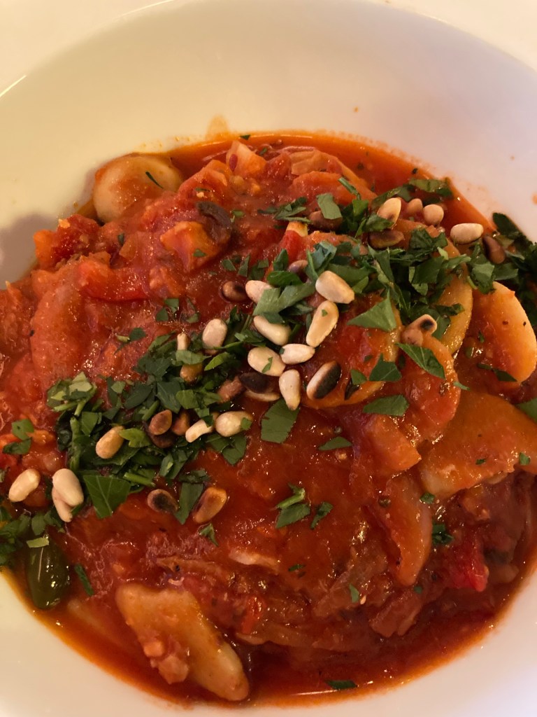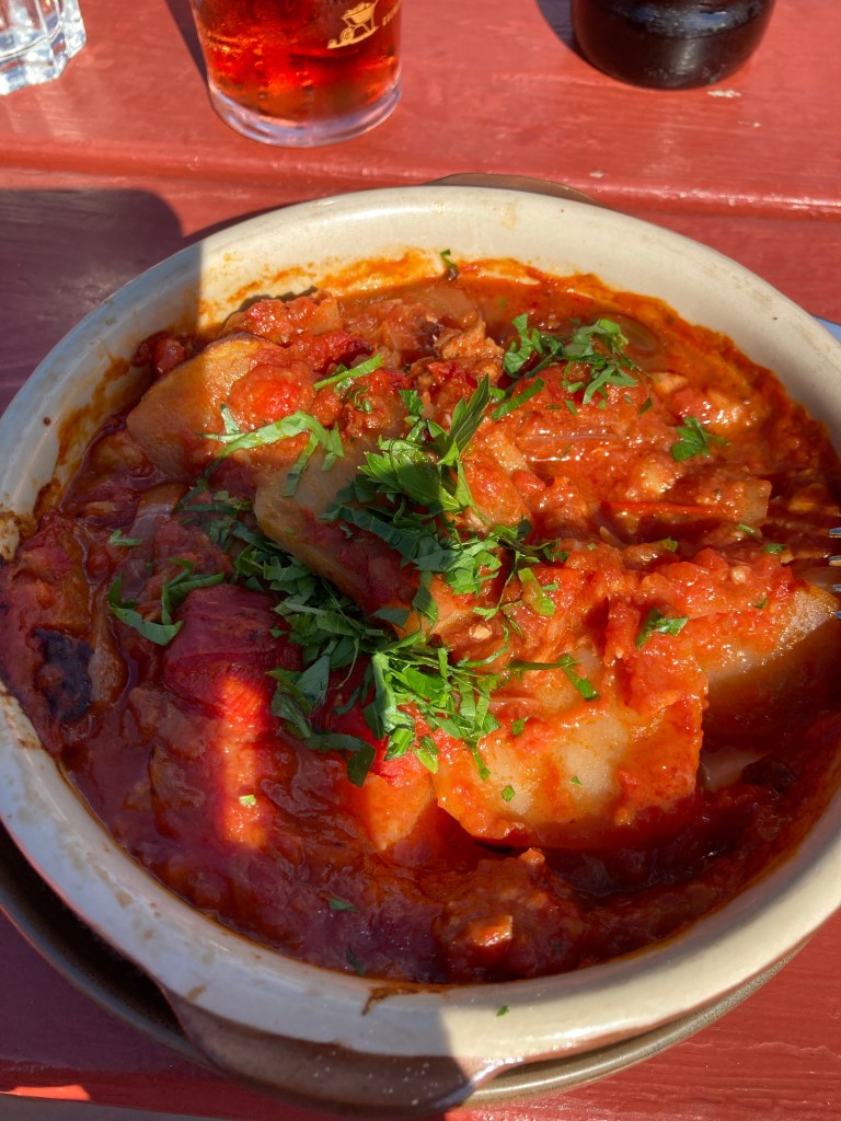 Du bacalao soit de la morue en sauce tomate avec des pommes de terre le tout soupoudré de fines herbes – un délice.