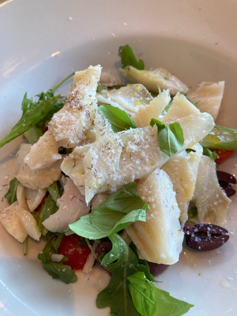 J’ai dégusté une salade de stockfish agrémenté de parmesan râpé avec des olives. Fameux ! Le stockfish est alors remis dans l’eau pour reprendre forme et il est alors cuisiné. Il reprend alors son poids et sa forme d’origine. Il peut alors reprendre 3 fois son poids séché.