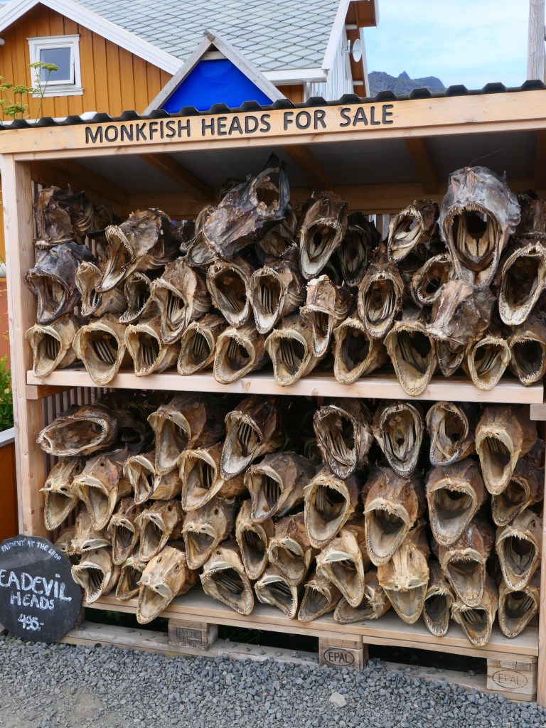 Pour rigoler mais en étant très sérieuse les têtes de morues séchées se mangent en soupe ou bien on les fait cuire et on récupère le jus qui est plein de protéines. En écoutant un film là-bas j’ai entendu que l’Afrique devrait utiliser ce produit sur place car cela nourrirait ses enfants. Et puis il y a la fameuse huile de foie de morue que tout le monde a gouté dans sa vie au moins une fois.