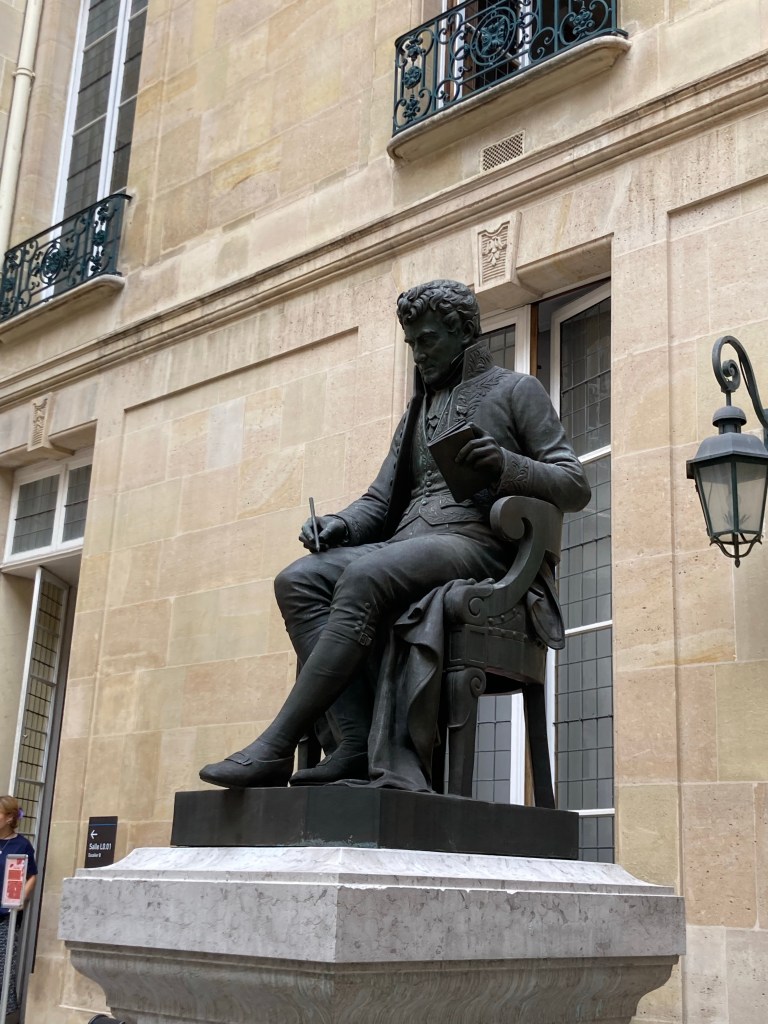 Au centre de la cour il y a la statue de Sylvestre de Sacy.