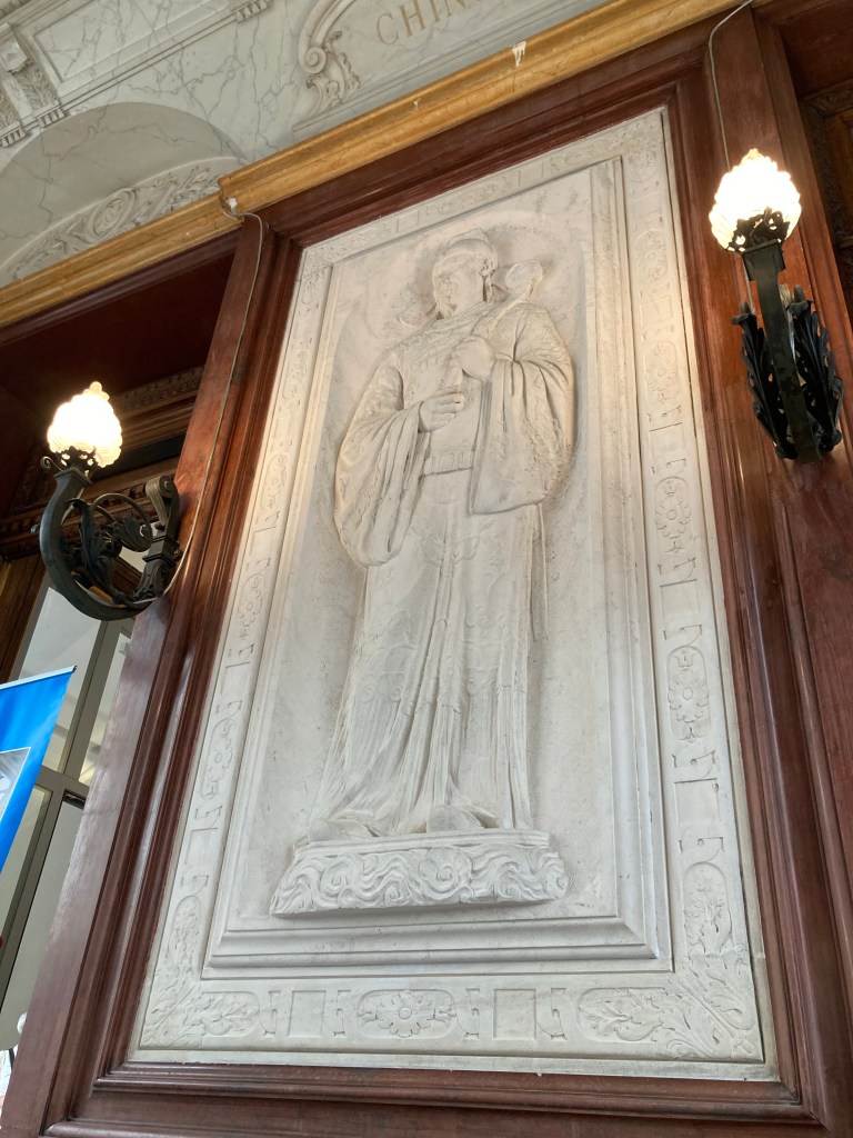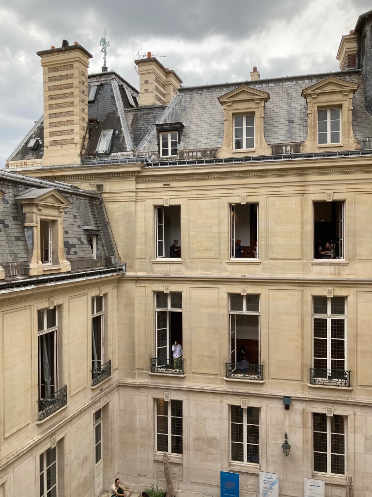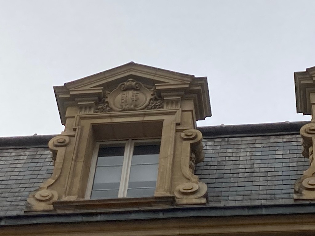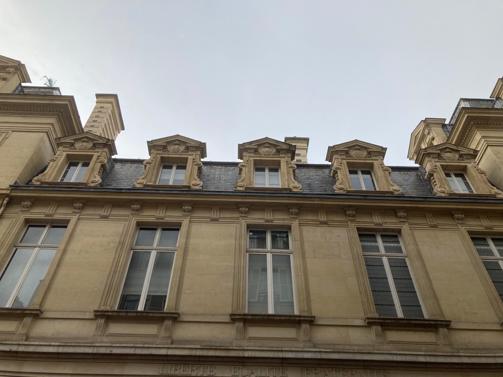 En sortant de l’immeuble sur la rue des Saints Pères o peut voir sur les fenêtres du dernier étages des signes en japonais, chinois, persan…. Cela marque les esprits et en 6 ans d’étude je ne l’avais jamais remarqué – normal je courais d’un site à un autre donc pas le temps de lever les yeux au ciel !