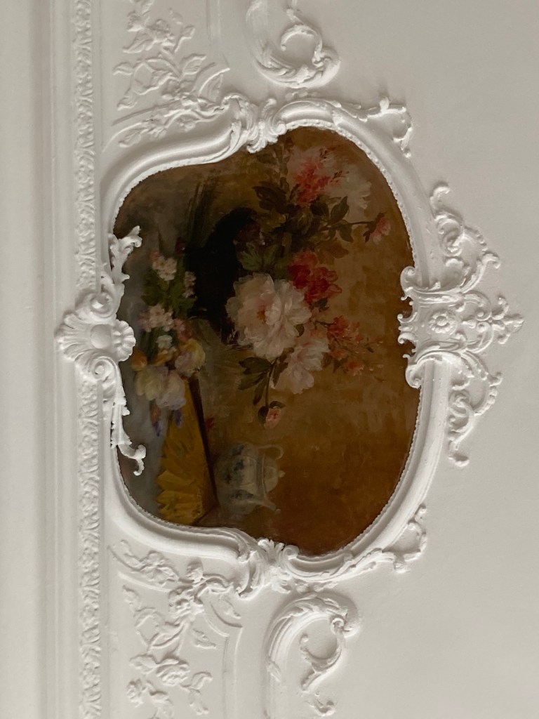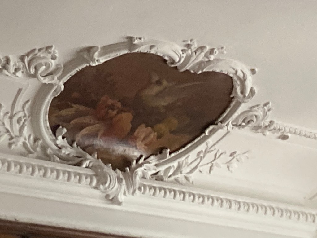 De cet étage on aperçoit la girouette sous forme de grue qui symbolise l’immortalité dans la Chine ancienne, le croissant de lune référence à la civilisation arabe et le serpent symbole du temps dans la civilisation africaine. Les plafonds sont décorés de jolies peintures du 19e, mélange de fleurs et d’oiseaux.
