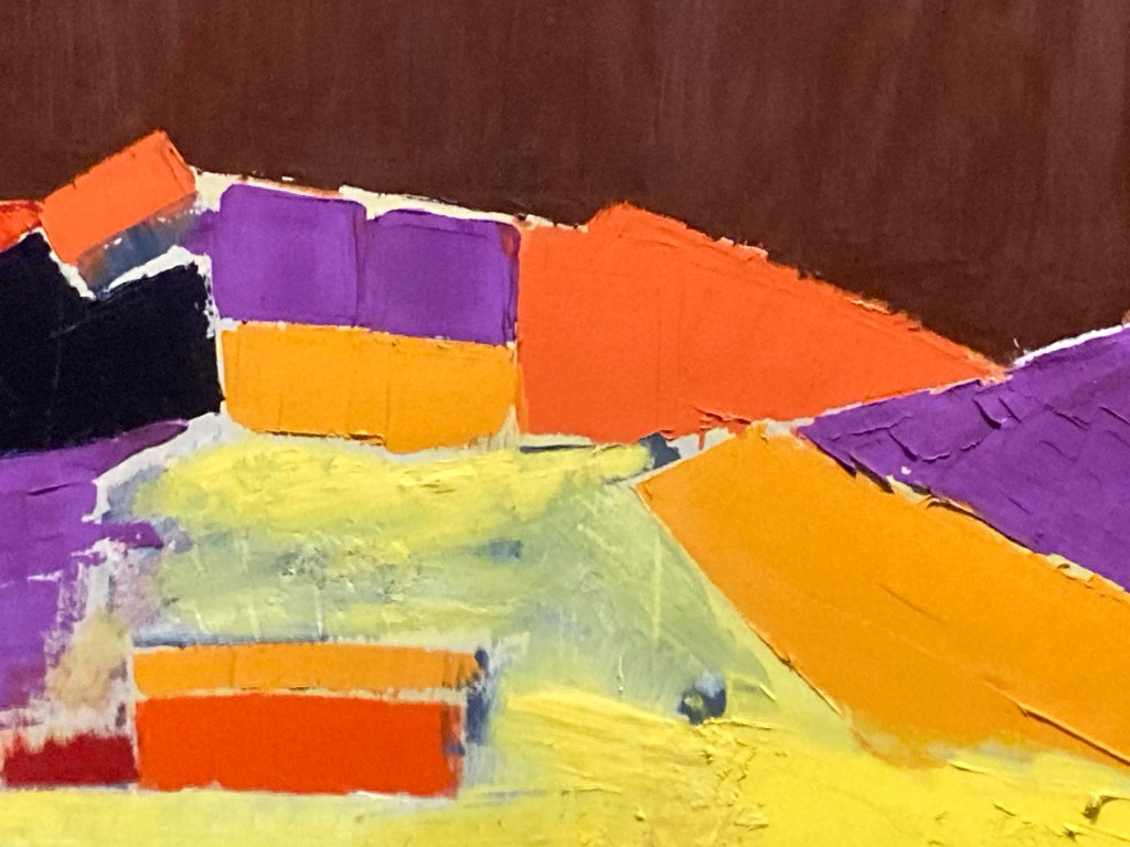 Puis il part en voyage en Sicile et là c’est une explosion de jaune, rouge, mauve, rose. « On peint à mille variations le coup reçu ». Tout est dit. Tout est réduit à l’élémentaire, au minimum et laisse le spectateur inventer son histoire. Son regard est inscrit dans le tableau qui se révèle à vous seul.