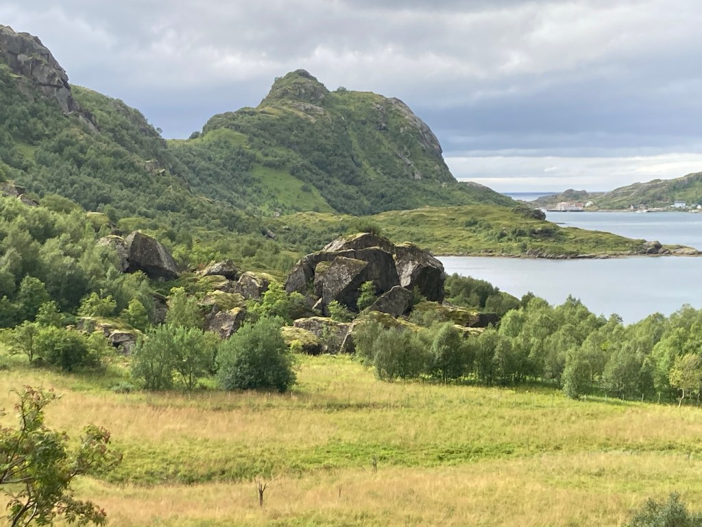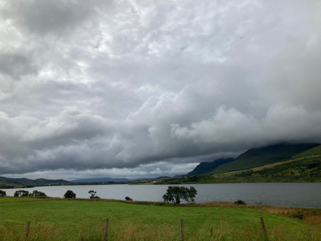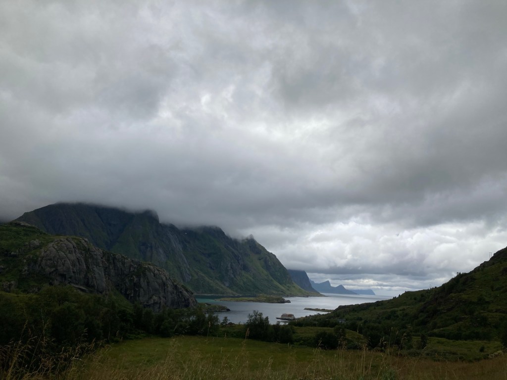Il faisait un temps gris qui rendait l’atmosphère glauque et franchement donnait envie de se couler sous une couette bien chaude en attendant des jours meilleurs. Mais la verdoyance des abords des fjords était impressionnante. Les nuages épais blancs clairs et toute en longitude léchaient les monts du fjord. On aurait dit une danse égyptienne.
