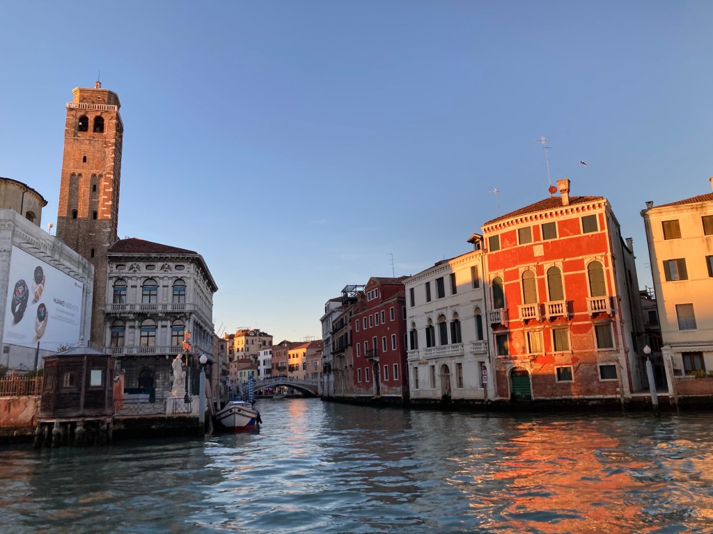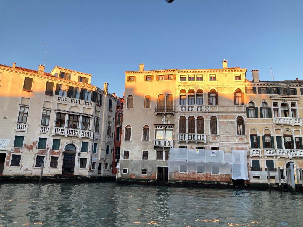Arrivée par un beau soleil et un ciel bleu qui permettait d’admirer les dolomites enneigées, j’ai filé prendre le vaporetto pour arriver dans Venise. Une heure de bateau relie l’aéroport au centre de la ville.