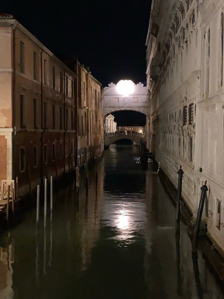 Venise s’ensommeille, le canal se pare de son habit gris et disparait peu à peu dans le noir et les lumières tamisées des lampes.