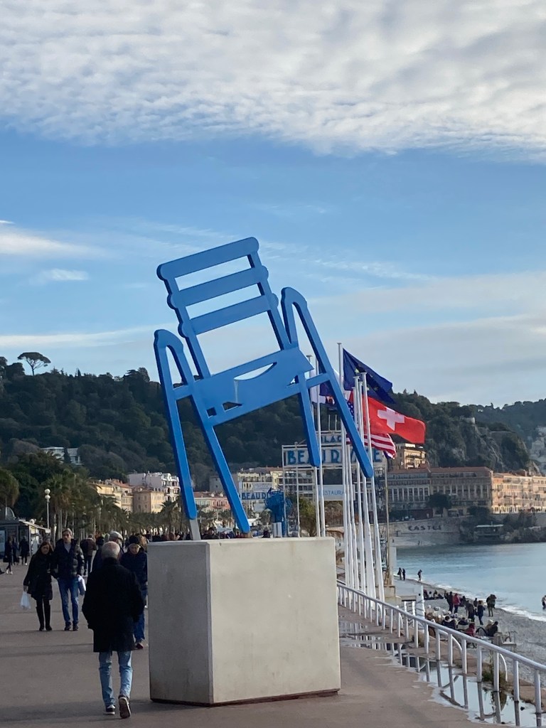 Puis je m’asseyais sur les chaises bleues qui bordent la promenade proche de la mer ou plus éloignées pour prendre du recul et déguster la sérénité qui m’enrobait.