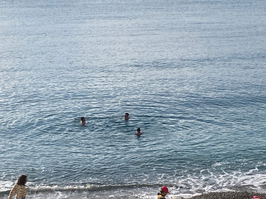 Des nageurs niçois je suppose testaient la mer et s’ébrouaient dans une eau calme et plate.