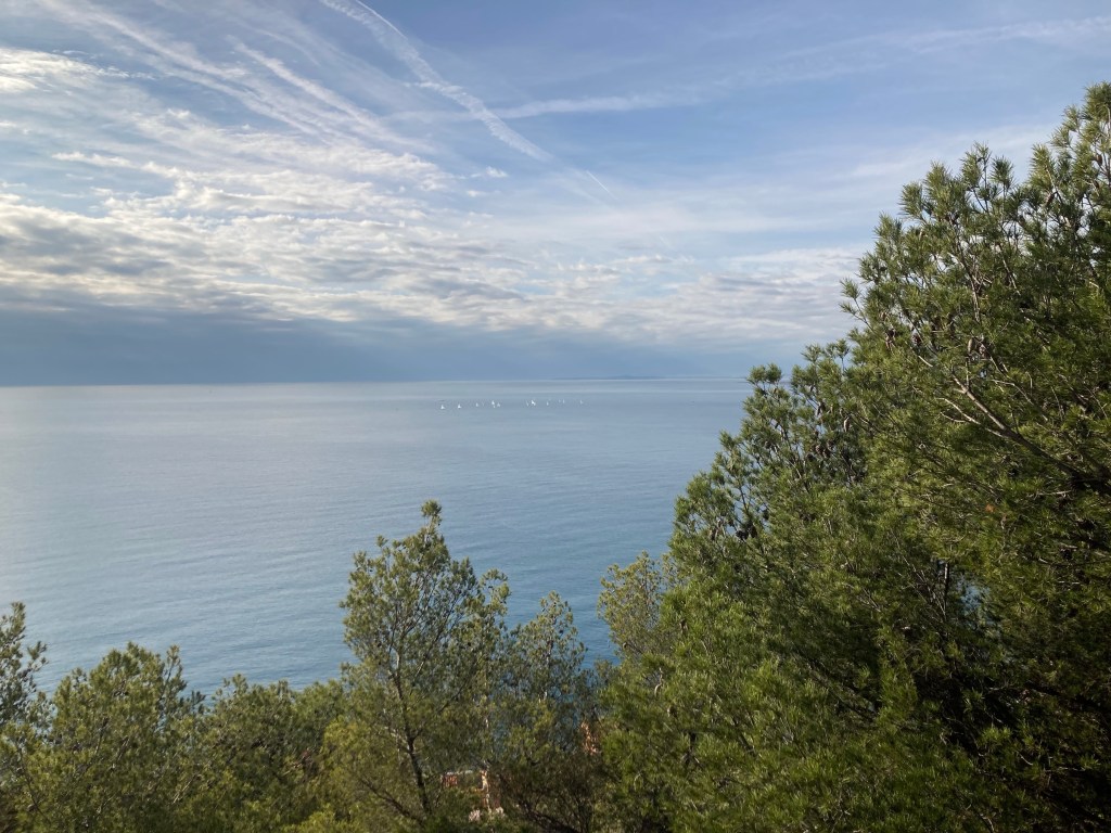 De l’autre côté les pins parasols encadraient le paysage de la mer en contrebas. On ne savait plus définir ce qui était la mer du ciel. De temps en temps des avions décollaient et faisaient un spectacle.