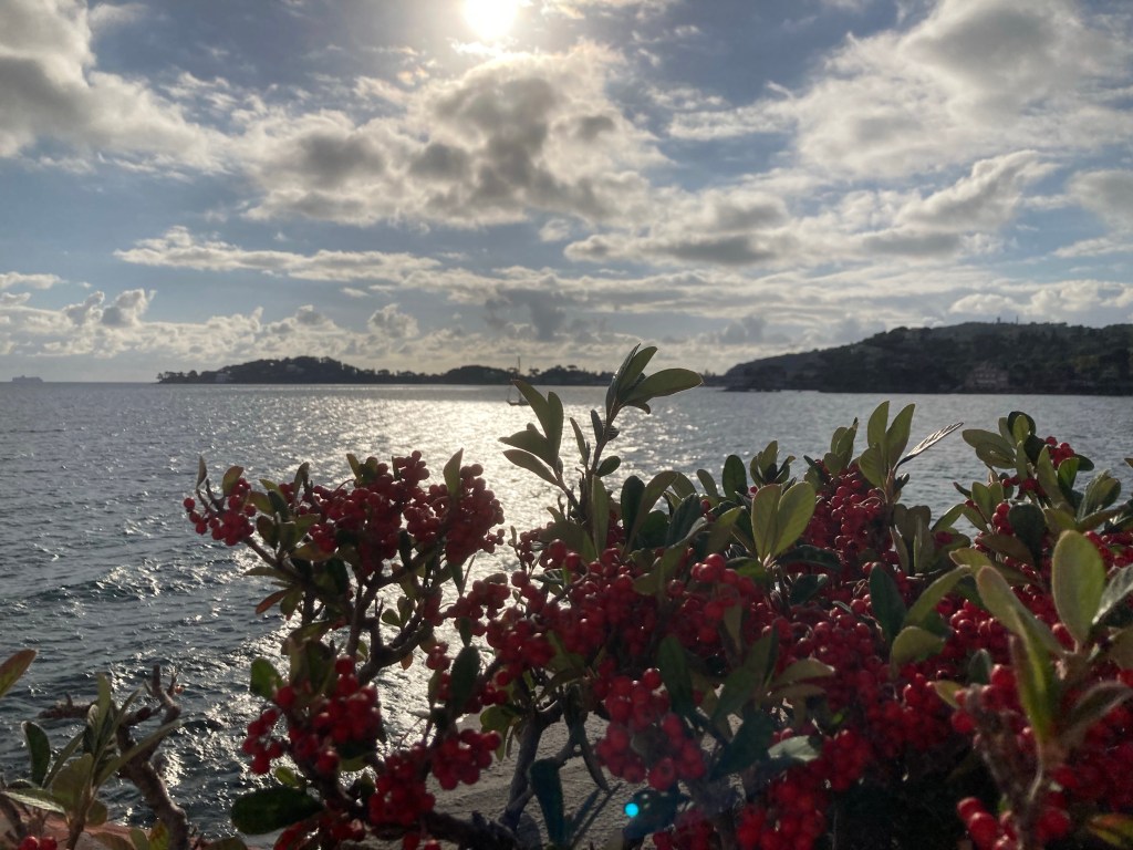 Le tout agrémenté de gros oliviers qui sont la caractéristique du sud de la France. Et surtout ce soleil se cachant dans les nuages de moutons et faisant rayonner la mer en lui créant des reflets mouvants.