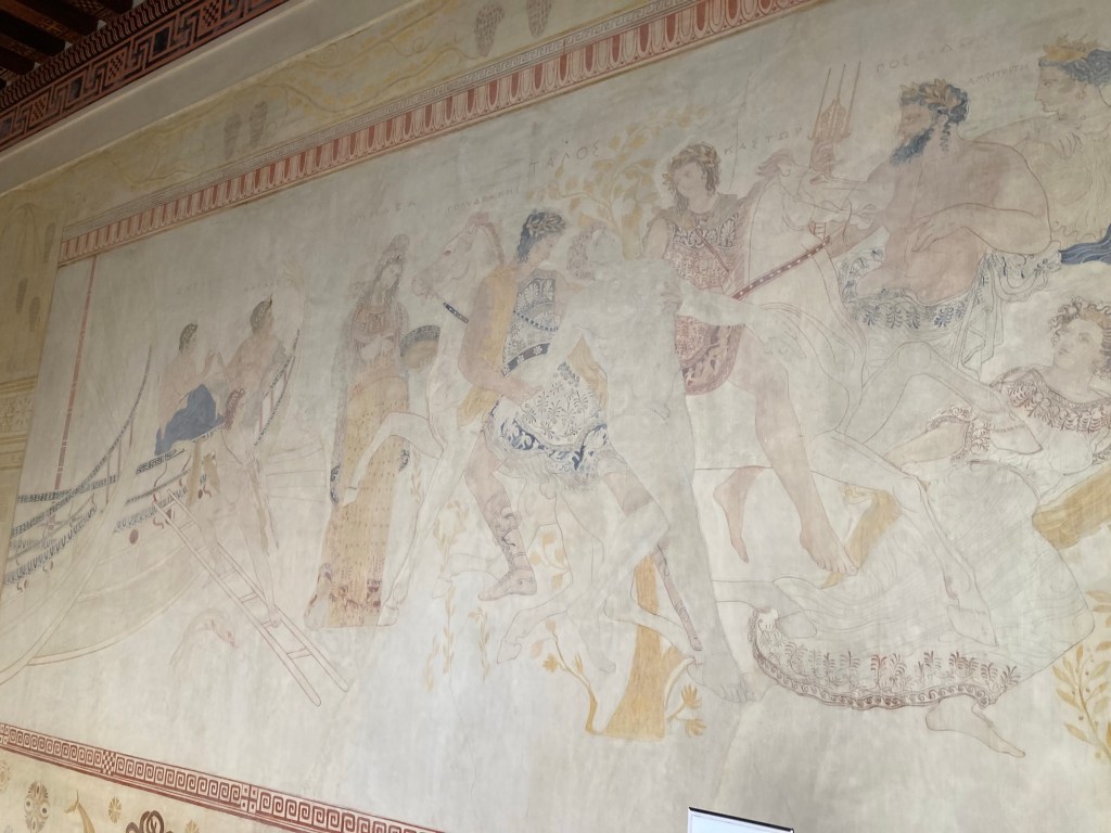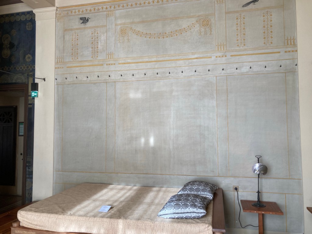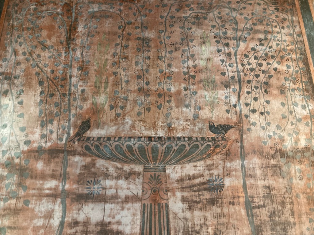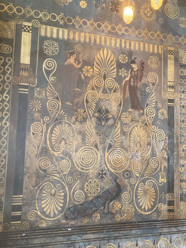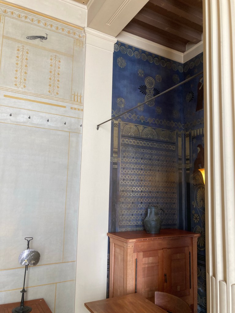 Puis entrant dans la maison on changeait de décor et la Grèce s’introduisait en vous avec ses mosaïques au sol, ses fresques aux murs et ses plafonds en caisson tous peints différemment. A en avoir le souffle coupé !