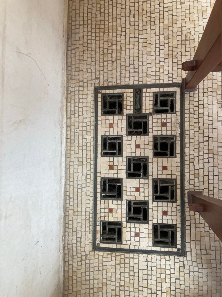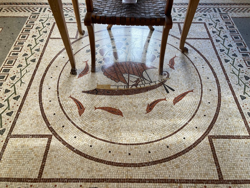 Juste pour vous faire admirer l’ingéniosité de l’architecte la chaleur passe par le sol à travers des trous qui sont intégrés dans la mosaïque !
