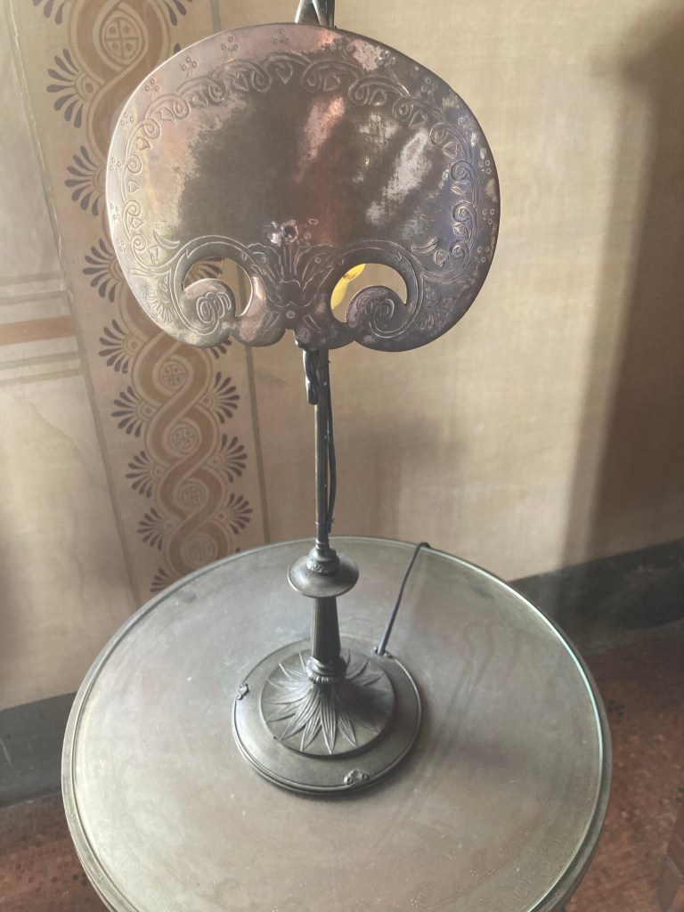 J’ai aussi adoré la salle de repos dite Triptolème avec la déesse du blé et la table ronde transparente qui permet de voir la mosaïque qui représente Triptolème et reflète le plafond à caisson rouge, noir et doré. La lampe aussi est une merveille : à godet en opaline caché par un masque en cuivre argenté et gravé.