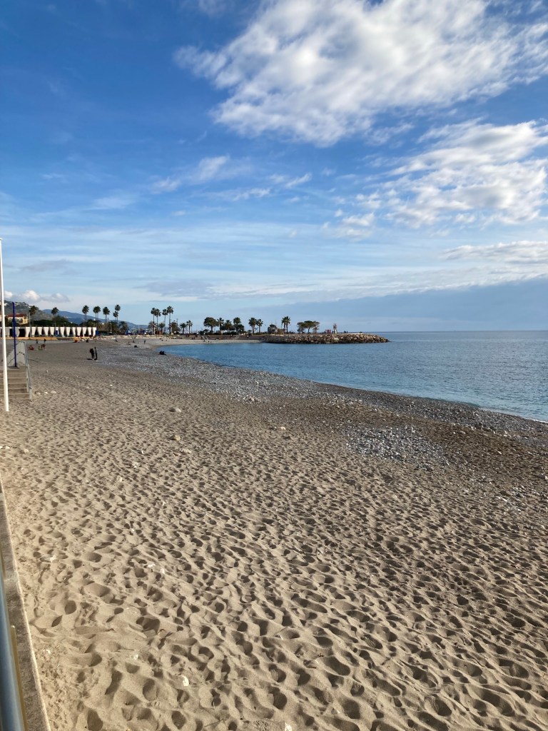 Arrivée sur le Casino qui barre la route et j’ai longée le bord de mer avec sa plage de sable un peu caillouteux !