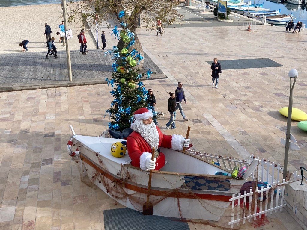 Sur la plage en guise d’humour pour Noel il y avait un père-noël dans son bateau ramant !