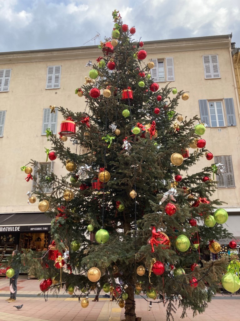 Et je suis remontée vers la mairie où là aussi il y avait une crèche et surtout un magnifique arbre dont j’ai oublié le nom. En suivant les rues j’ai découvert un marchand de citronniers : citron caviar, citron quatre saison, kumquat, orange…. Tout ce dont je rêve de garnir mon balcon !