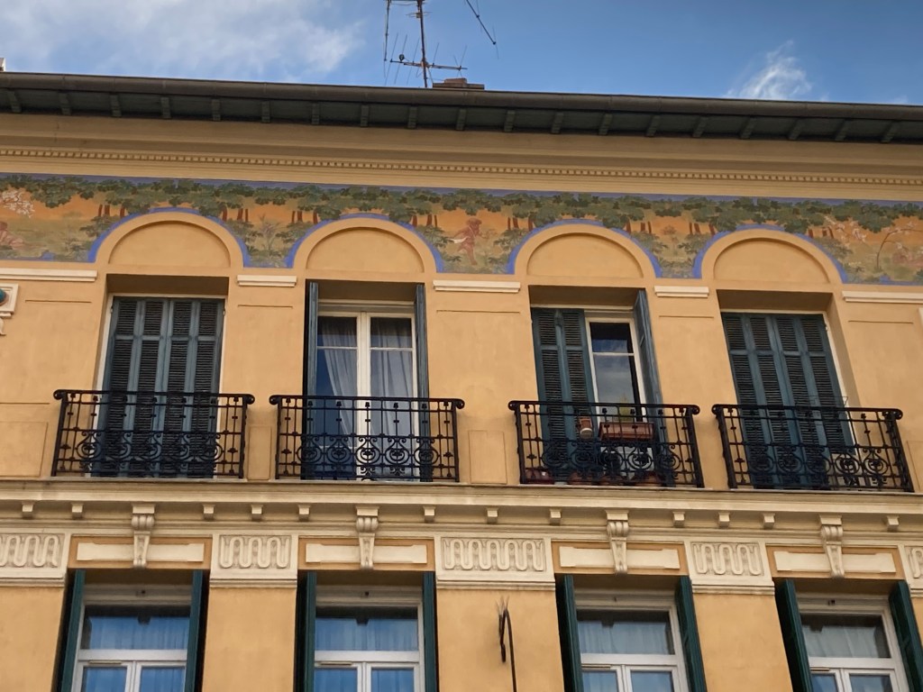 De très beaux bâtiments ornés de fresques sur les derniers étages méritent de les regarder de plus près. Décors de fleurs !