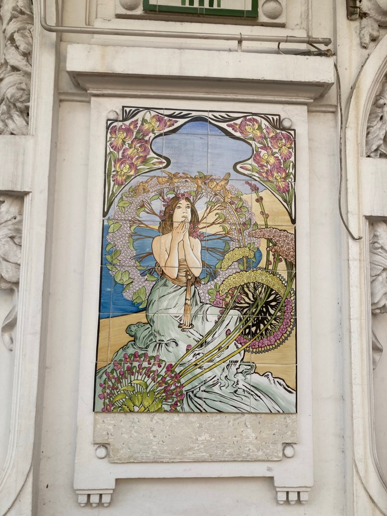Et après j’ai pu admirer un bâtiment blanc avec des œuvres de Mucha et je suis revenue prendre le train pour rentrer sur Nice en regardant la mer et son coucher de soleil.