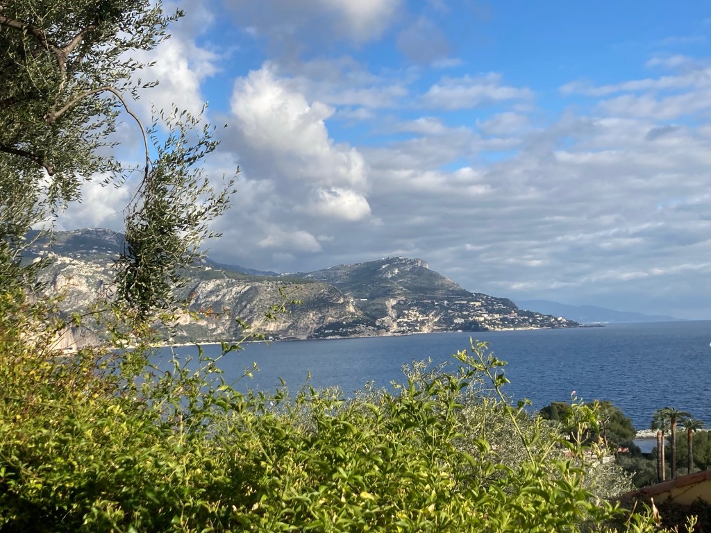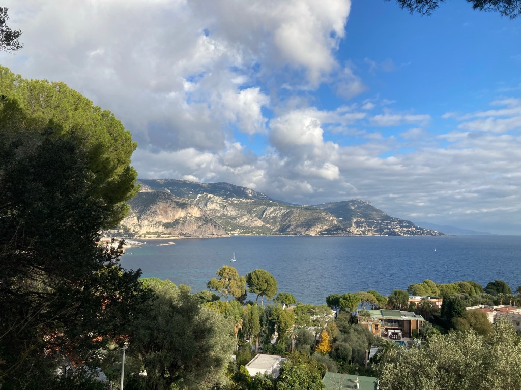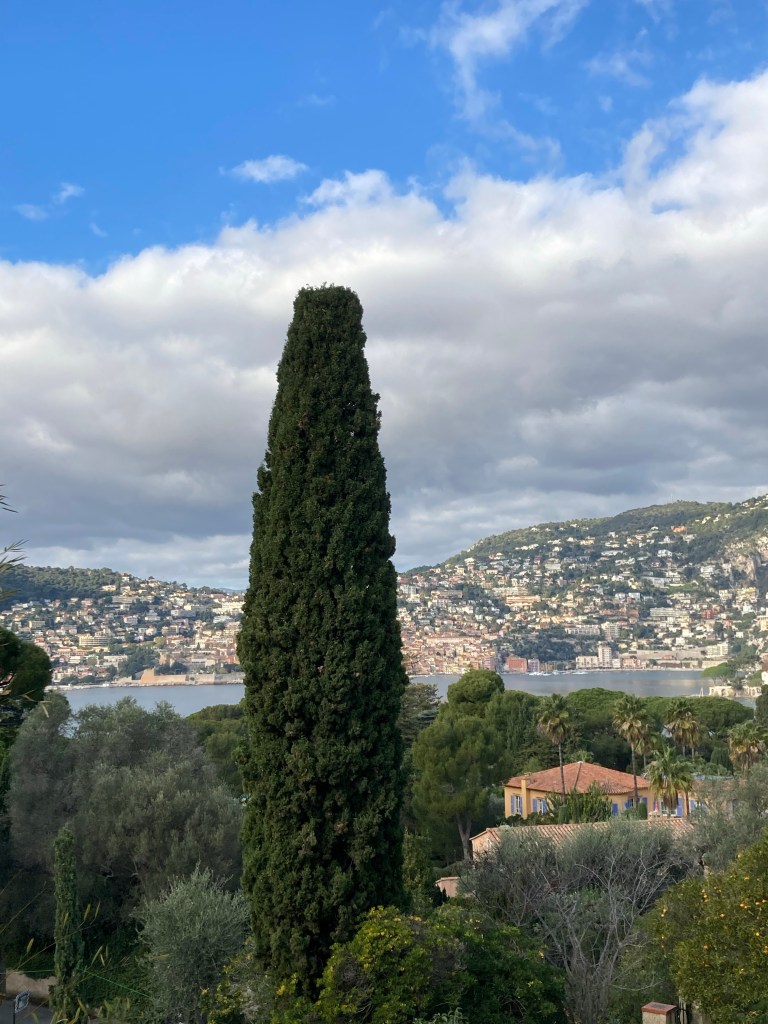 Mais que de jolies vues sur la mer et le cap Ferrat ! De magnifiques villas avec des pins cyprès qui pointent leur nez vers le ciel. Les contreforts des montagnes où ont fleuris des maisons et un ciel qui n’était pas très engageant.