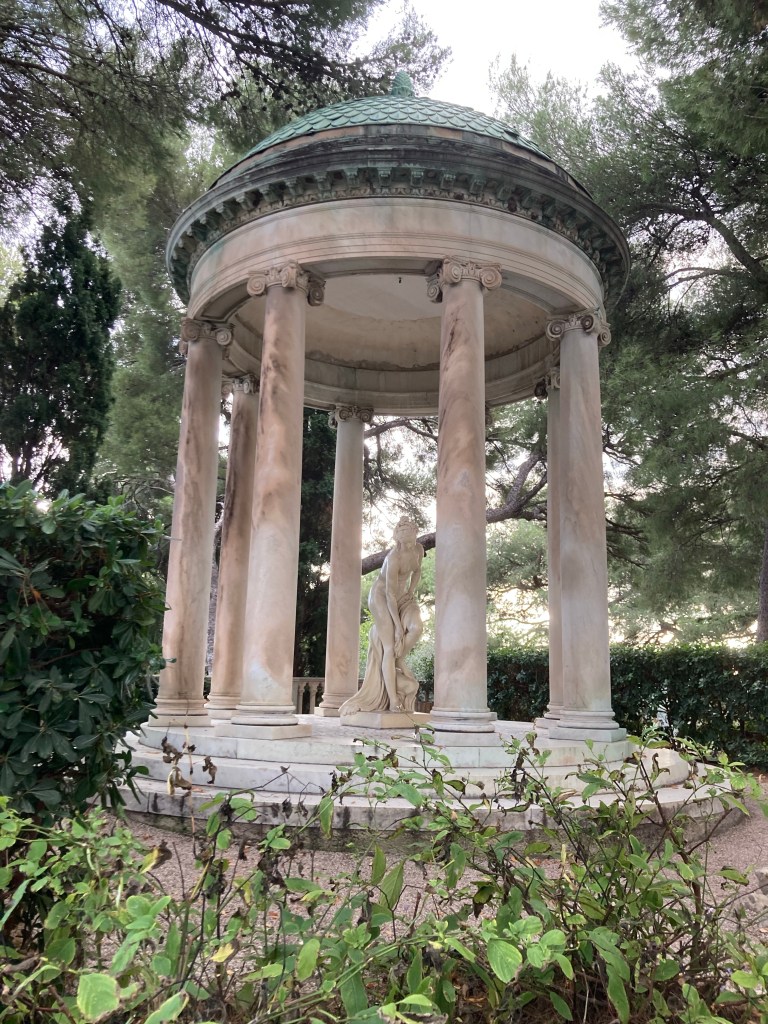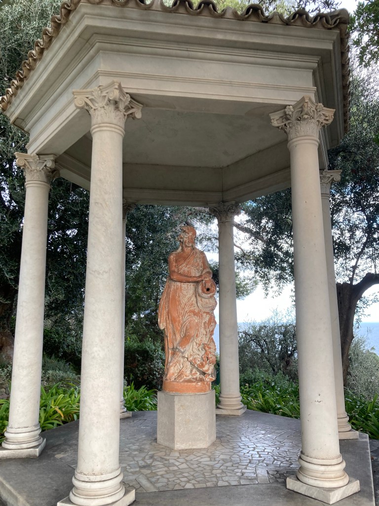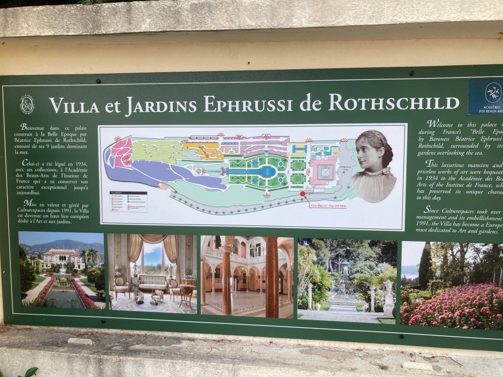 Un peu d’histoire : À 19 ans, Béatrice de Rothschild épouse Maurice Ephrussi, banquier parisien originaire de Russie de 15 ans son aîné et ami de ses parents. Leur mariage est célébré avec faste le 6 juin 1883 à la synagogue de la rue de la Victoire à Paris. Maurice est dépensier et coureur de jupon. Ils ne pourront avoir des enfants et ils divorceront 21 après en 1904. Le père de Béatrice meurt en 1905 et la baronne hérite de son immense fortune. La même année elle choisit le Cap Ferrat pour y construire une villa de rêve. Lorsqu’elle découvre ce terrain, Béatrice a le coup de foudre pour la beauté du lieu. Et quand elle apprend la mise en vente du terrain, également convoité par le roi des Belges Léopold II, elle l’achète immédiatement. Sept ans de travaux pour construire la villa et réaliser ce jardin sur une rocaille. Elle partagera sa vie entre Paris, Deauville et le cap Ferrat. En 1934 elle meurt à Davos de la tuberculose. Collectionneuse hors pair, Béatrice lègue sa villa et la totalité de ses collections à l’Académie des Beaux-Arts en 1933. Les 7 hectares de terrains et quelques 5 000 œuvres d’art leur sont ainsi donnés.
