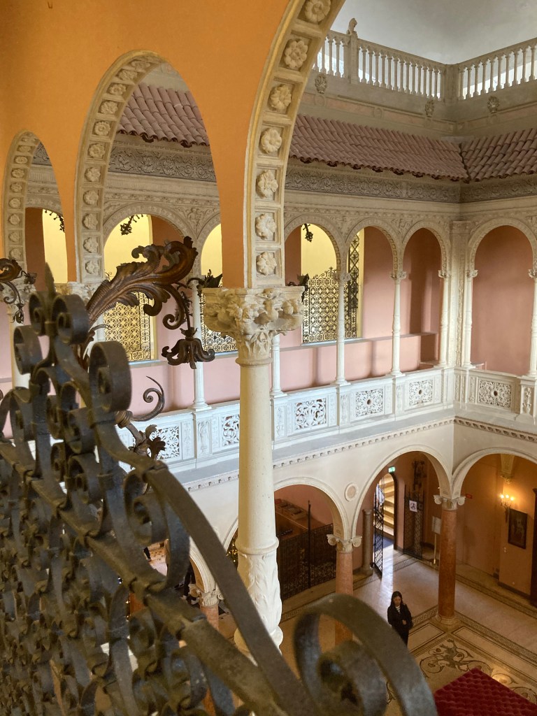 Puis j’ai parcouru l’intérieur de la maison dans un pur style empire tant les meubles que les murs peints. De jolies vues ouvraient sur le jardin.