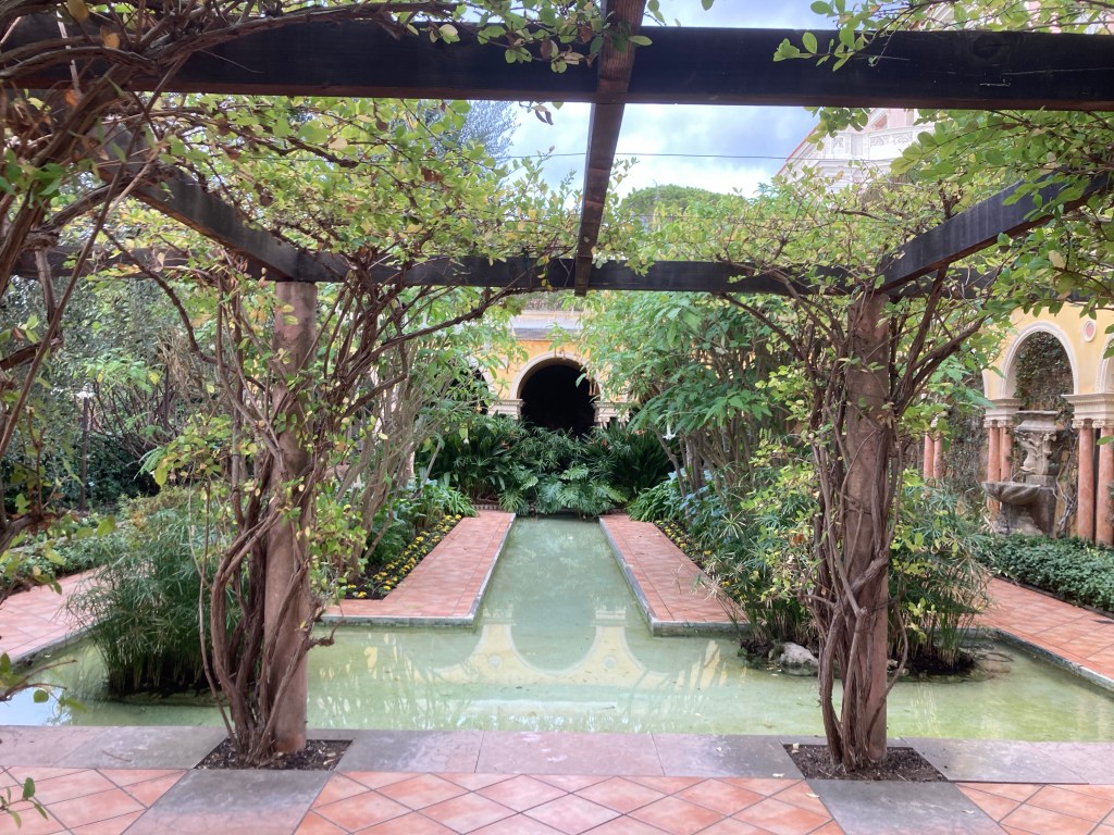 Après je suis partie me promener dans le jardin qui était en travaux de réfection. Mais je suis tombée sur le jardin espagnol avec son bassin rose à eau verte. Un endroit très agréable.