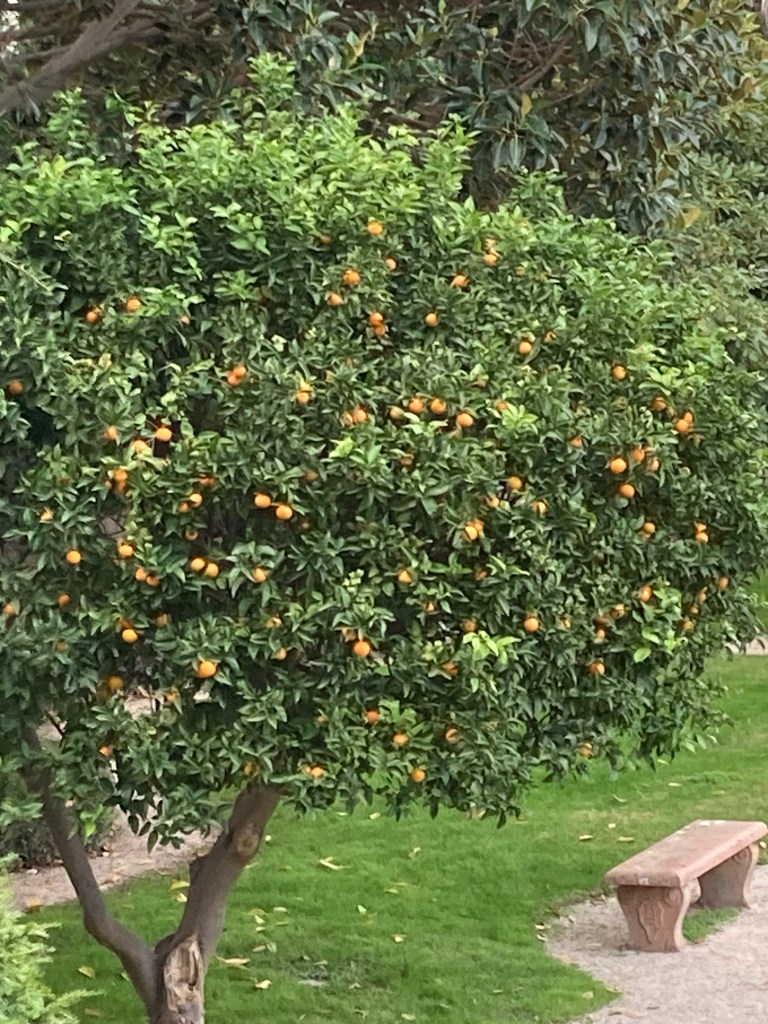 Je me suis installée sur un banc pour regarder ce jardin des délices et écouter Vivaldi entre autres. Un grand moment de bonheur et de repos. Devant moi un mandarinier plein à craqué de mandarines !