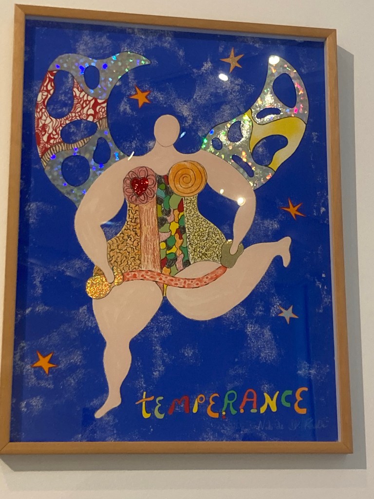 Cette femme aussi me fascine sur un fond bleu avec ces couleurs, ses seins ronds fertiles, et ces ailes de chaque côté des bras comme une femme volante, une femme oiseau. L’artiste l’a nommé « Tempérance ». Tout est détail et regardez les bien !