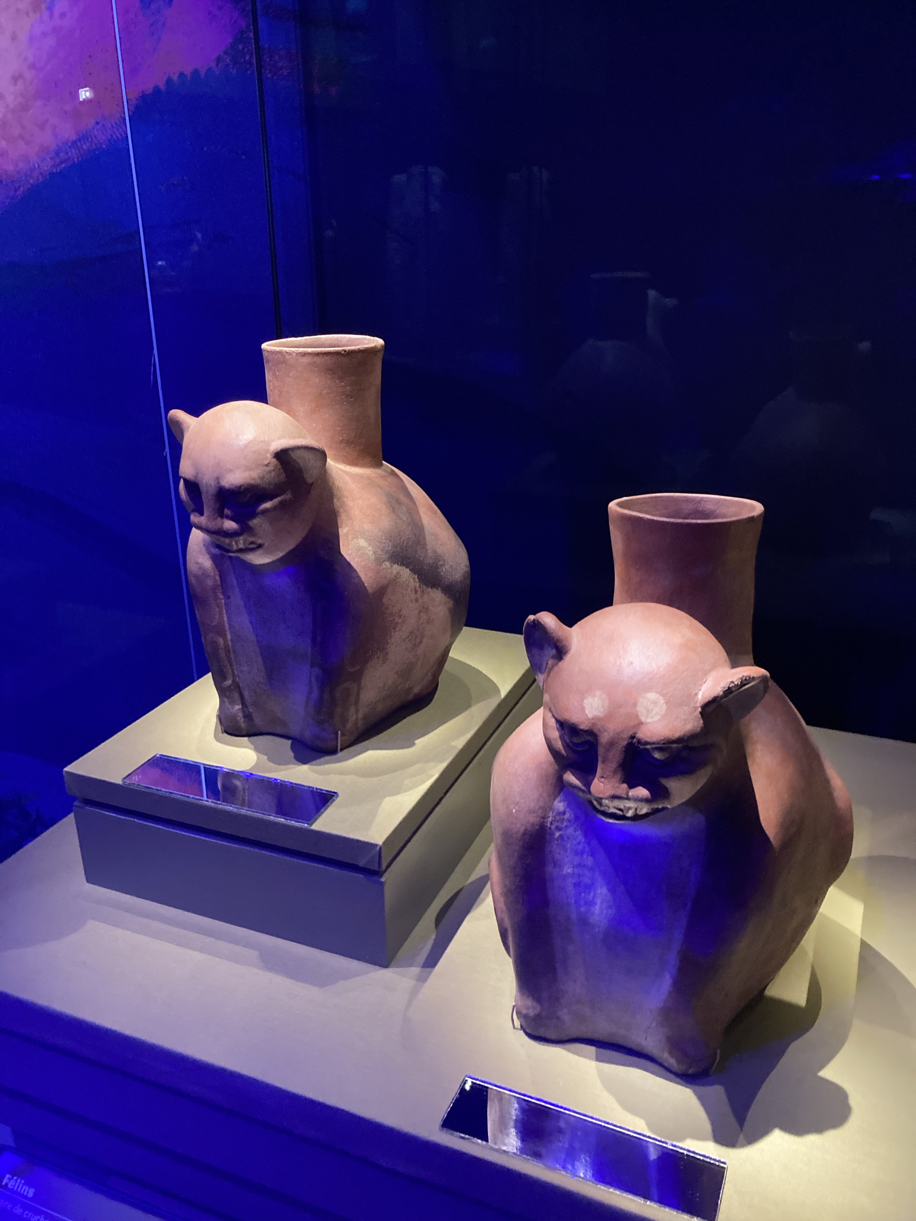 Puis on découvre des objets liés à la nature et au culte des animaux. Ici cette jarre représentant l’eau.