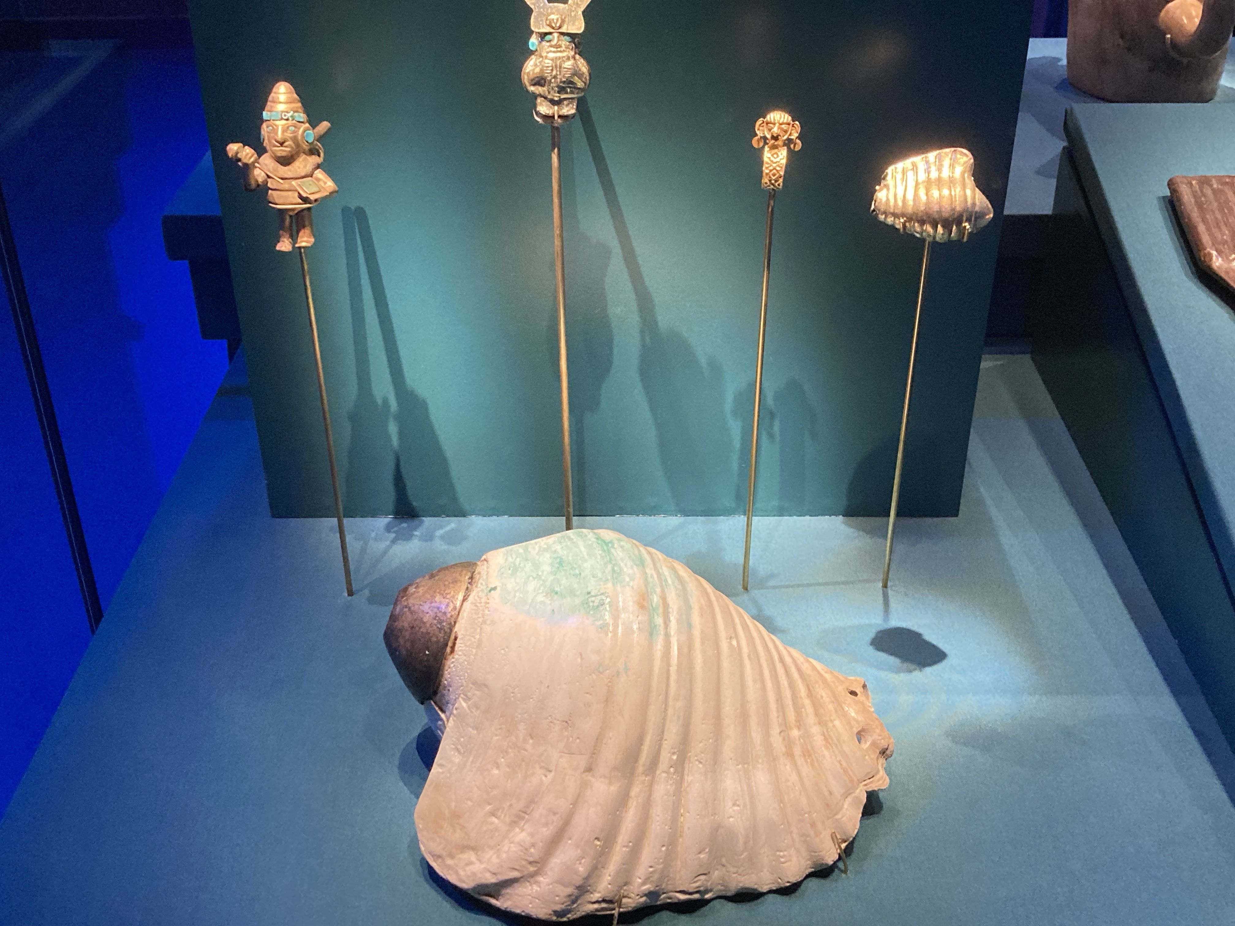 Beaucoup de bijoux aussi nous sont présentés et on peut voir que la turquoise était la pierre familière des incas, travaillée et mélangée à l’or.